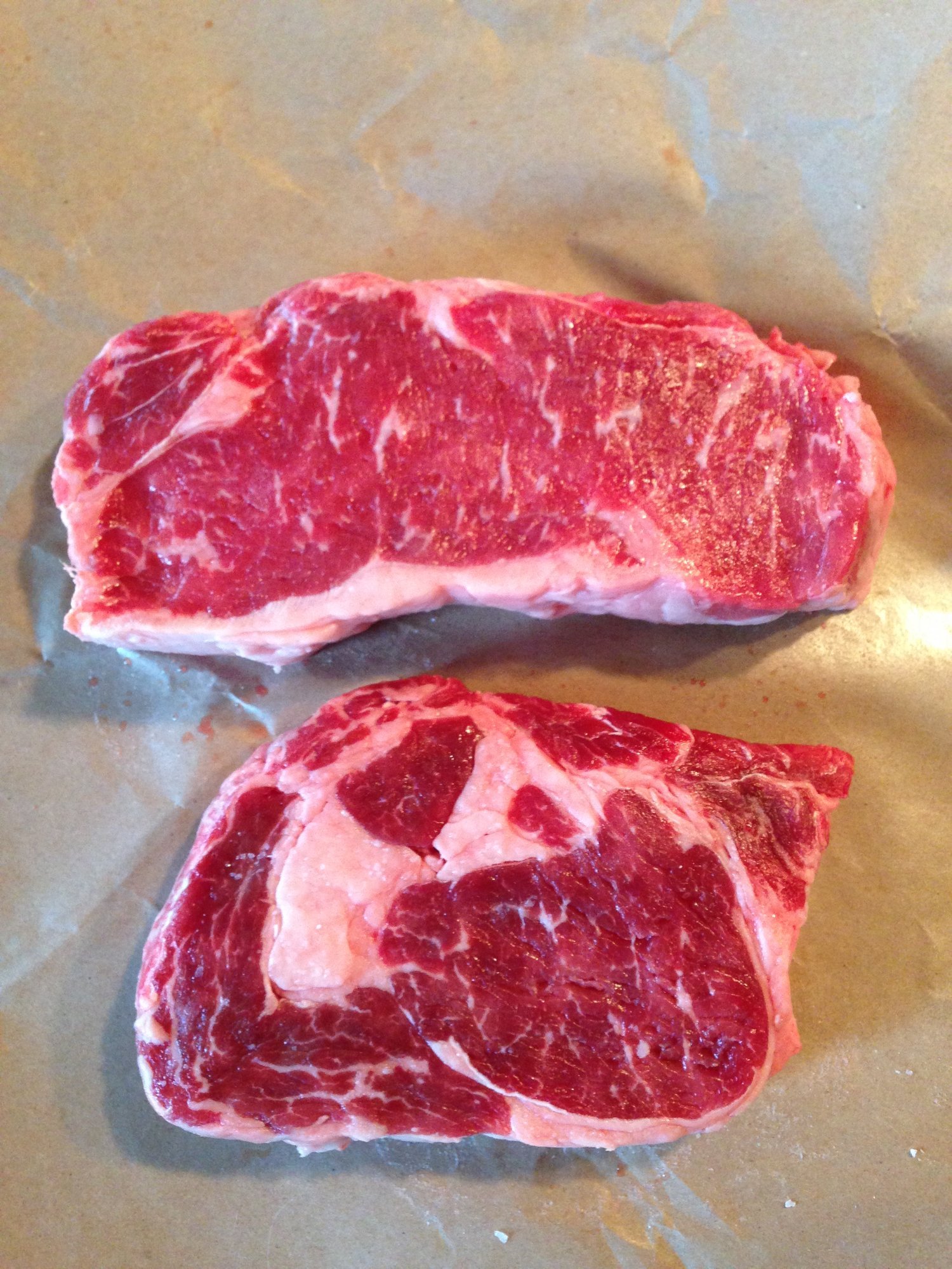 Browsing the SRF sale really put me in the mood for steak so naturally had to stop and pick a few up. 1 NYStrip and 1 Ribeye.
