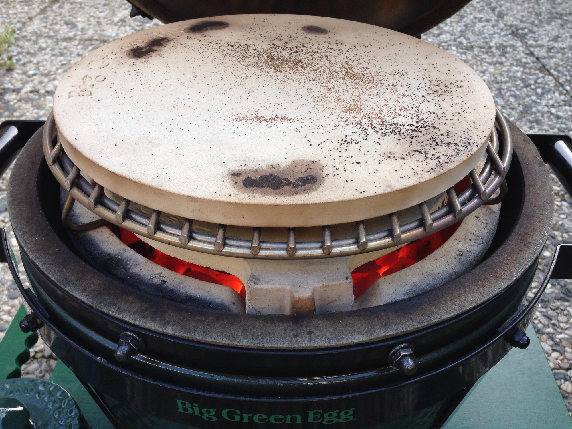 Although the official details of the MM seems to say that making Pizza on the MM is a no go, i read some post already and tried it this evening myself. I used the plate setter with leggs up, original 13" grid with on top a 13" stone and had really issue to get the temperature above 300F even with BGE charcoal. I think the main issue is the airflow due to stone size and the minimum space it is lifted by the plate setter. So i'm wondering if a Woo ring could help me out, and if so should the stone be smaller like 10" or so or would it be high enough to run with the 13" stone? Will post a picture later on.