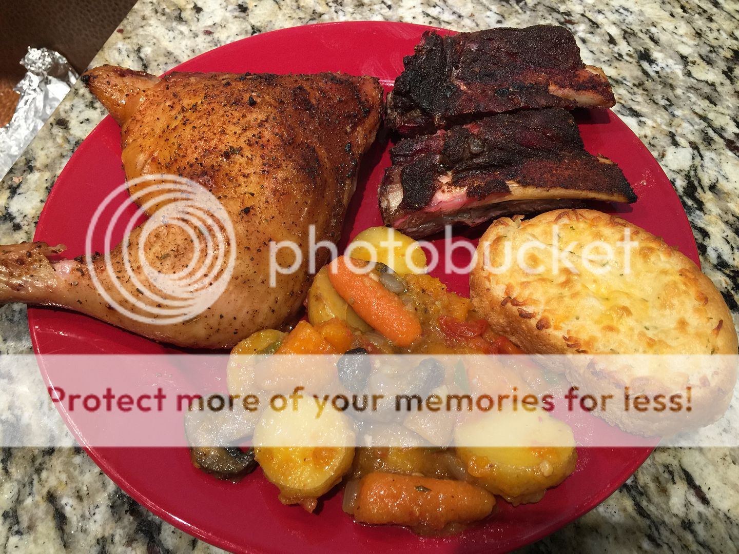 Beef Back Ribs, Chicken Quarters and Ratatouille.