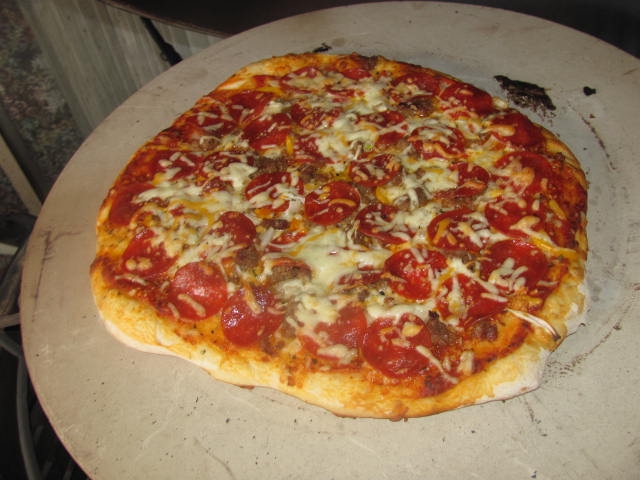 I also cooked pizza for New Year's Eve. Two BBQ chicken, a bacon cheeseburger, and a white pie with olive oil base, onions, sun dried tomatoes, feta, and mozzarella. In too much of a hurry and didn't get any pics.