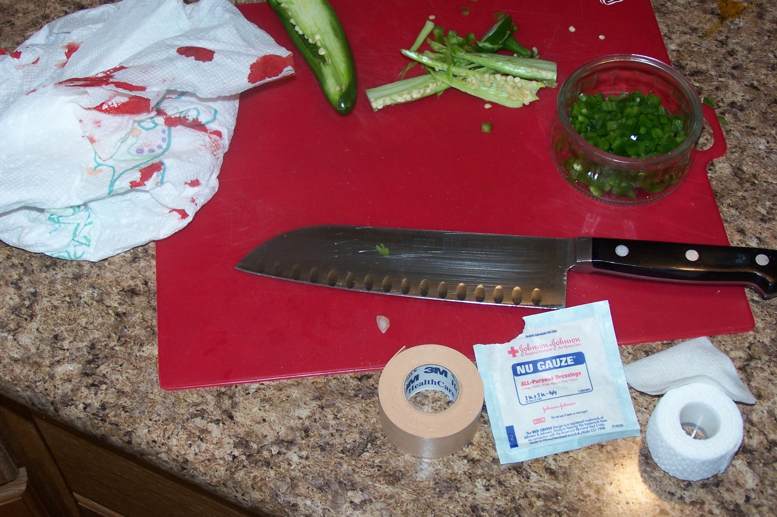 Talk about coincidence, was just chopping some jalapenos for supper and just took a 1/4 by 1/4 inch piece off my index fingernail and a little underneath flesh with it. Guess I didn't have my index finger completely perpendicular (or tucked under) to the peppers as I was slicing down. Fingernail is below knife on cutting board. Not the way I wanted to get out of dinner preps.Extra Large, 2 Large, Medium, Mini Max, Weber Summit gasser, Weber Q. Mankato, MN -