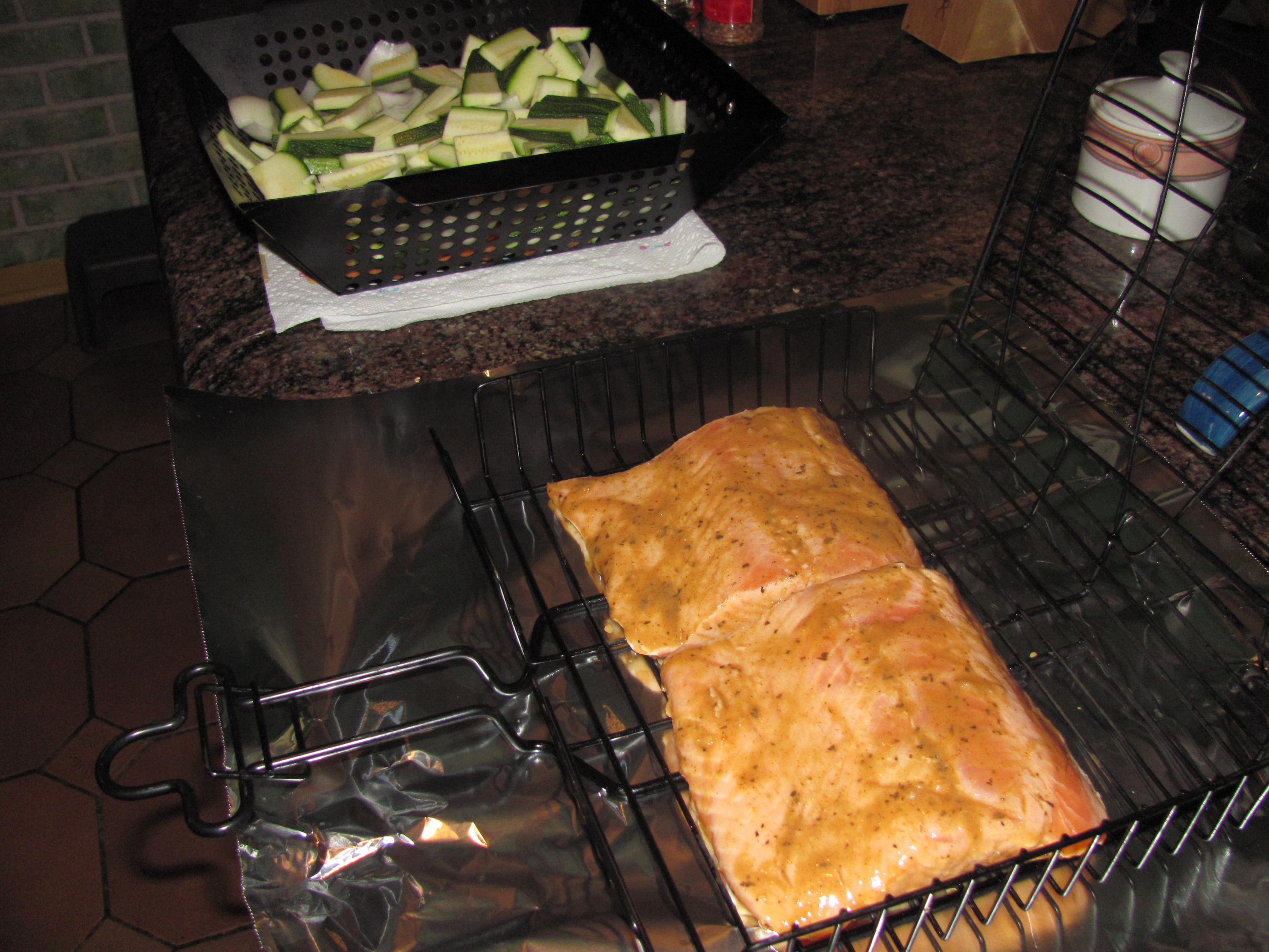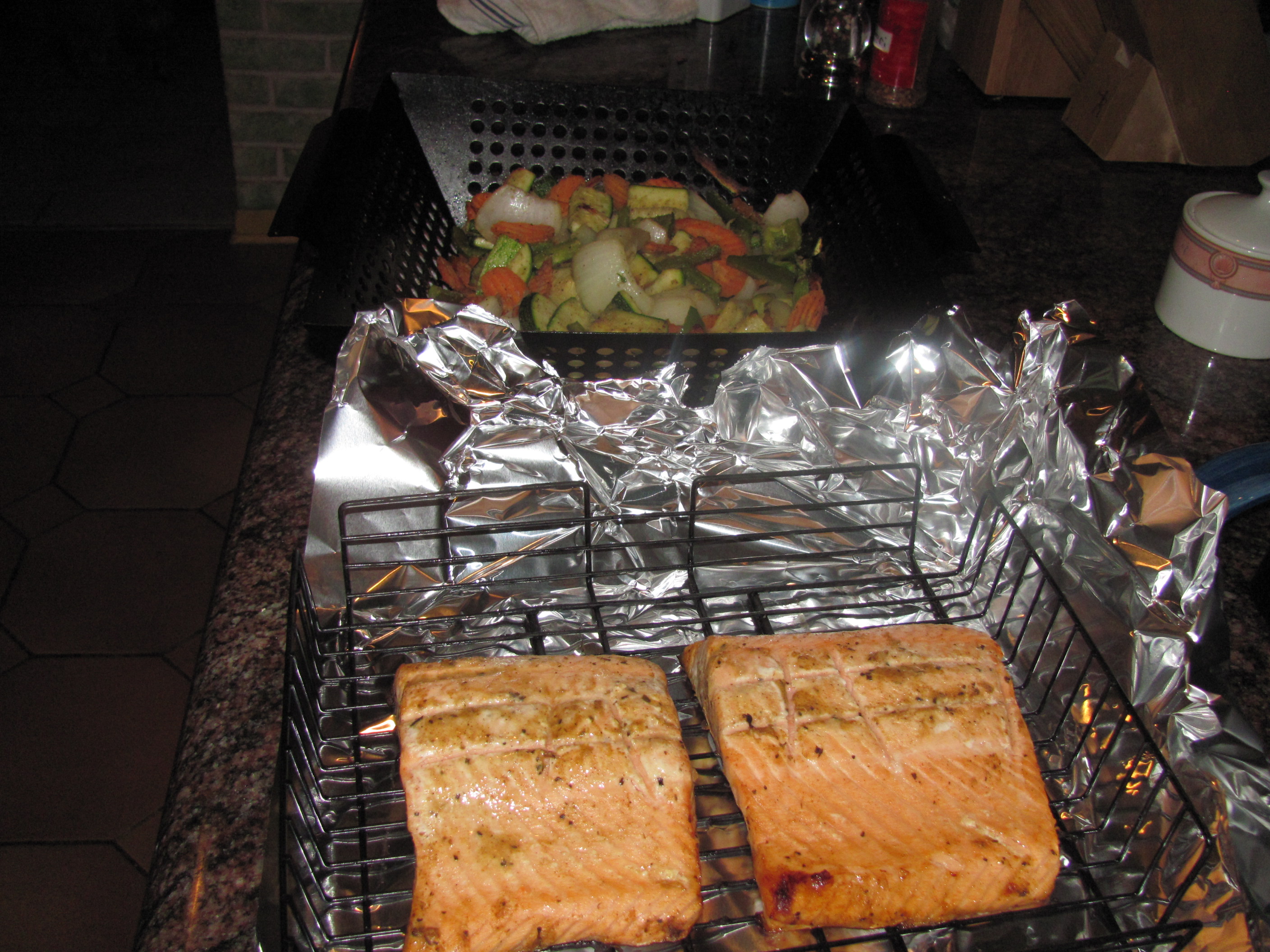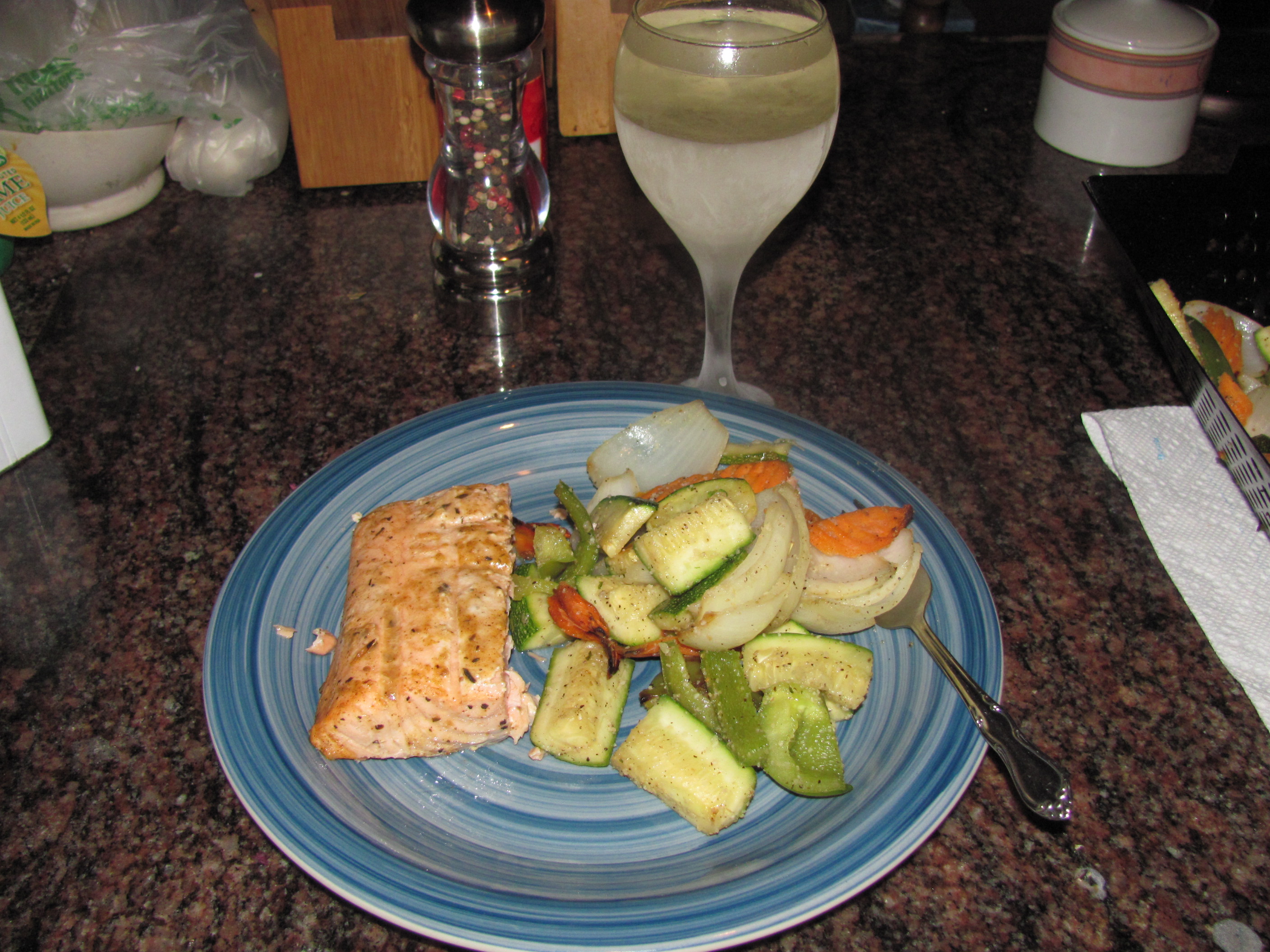 Nice meal Doc. A good healthy meal for sure, and a good cook. If you are looking for some variety, one possibility would be to try a hotter fire. That salmon looks like it could stand a little browning for added flavor. Think the veggies may pop a little more as well with some more heat. Just a couple things that came to mind looking at the pics. Good luck with the diet! A little creativity, and you might find quite a variety of possibilities with the diet restrictions.Happy cookinChris
