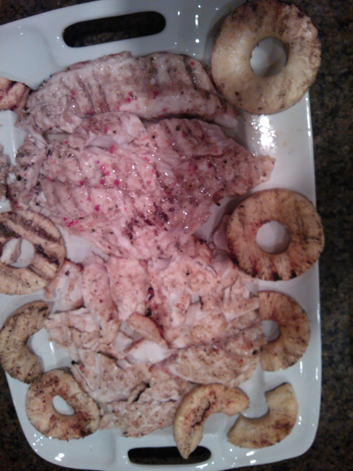 Had a great offshore trip earlier in the summer. Landed one of the largest scamps I have ever caught. Sorry about the fog in the pic but somehow my phone ended up in the cooler (probably those 8AM breakfast beers!). Anyway dipped into the flash freezer stash and had a great dinner. Did it old school and drizzled with Italian dressing. Fed over 8 with plenty of left overs. Served with grilled pineapples and home made caesar. Oh also did a Peach and Blueberry cobbler (doubled the fruit as suggested from jfarley post). All goodness!