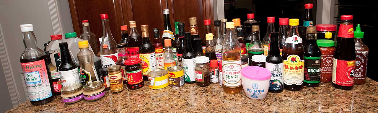 Reminds me of my "spice" cupboard, until we had the good fortune to meet some extraordinary asian families from Taiwan, China, Malaysia and Japan. We have learned to keep things simple and rely on very few basic ingredients to make our own sauces and blends. Still, when in my local T&T or other asian food store, can't help wondering how that bottle of mystery sauce would work.....