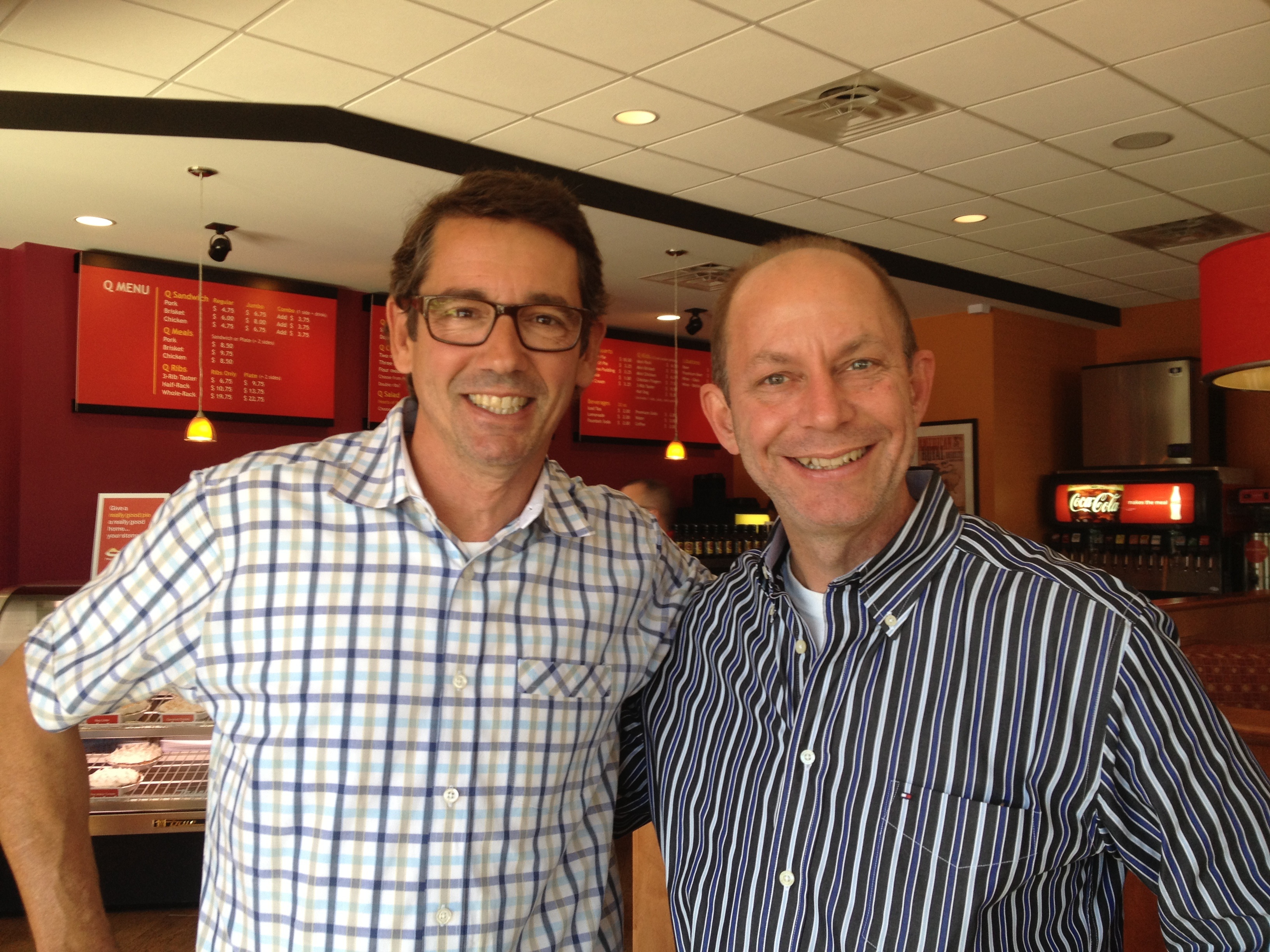 Tuffy Stone just opened a new Q Barbeque restaurant down the street from my house last week. Had really good brisket and ribs (but mine on the egg are so good too!). Fun when your heroes are bbq cooks like Tuffy and all y'all here! I asked him does he allow fan pics- well sure!