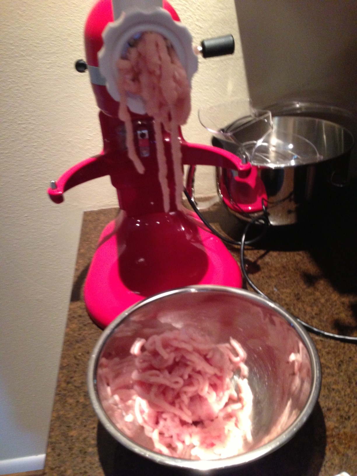 The In Laws bought me a meat grinder for my Kitchen Aid, so I had to try it out on something. I bought a couple Turkey Breasts and ran them through.