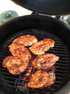 When I was done and my sons were devouring the tri tip I threw on a few chicken breasts that I rubbed with some left over rib rub and brushed with Stubb's original. I also had a well deserved Cuba Libre in my complimentary Bacardi insulated glass.
