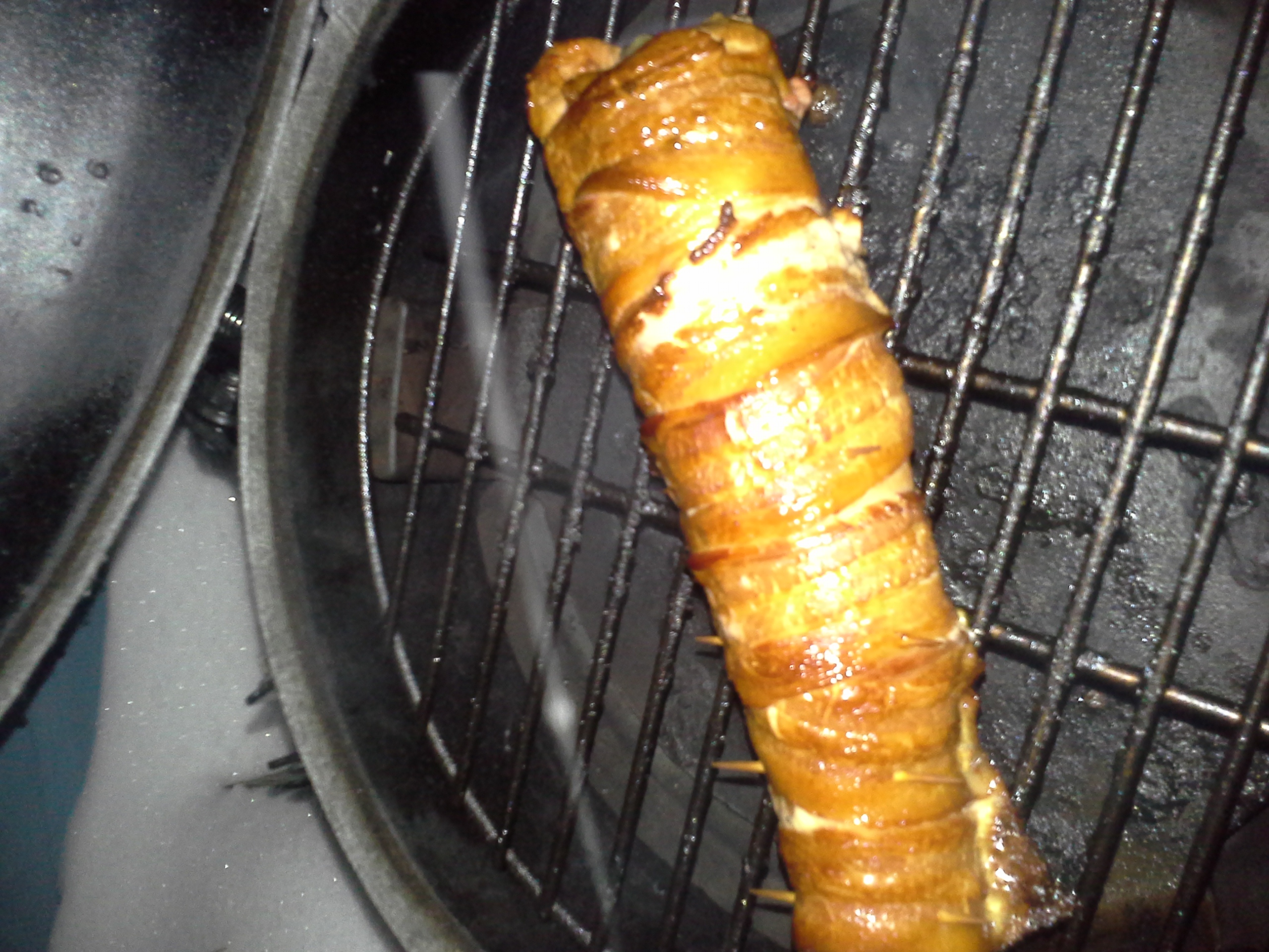 Stuffed it with feta and cream cheese and put spinach and green onion in it then wrapped in bacon. Put on indirect around 300 and pulled a little over 140. It was good but don't think I would use onion next time. Might try just chunks of apple and see how that is.