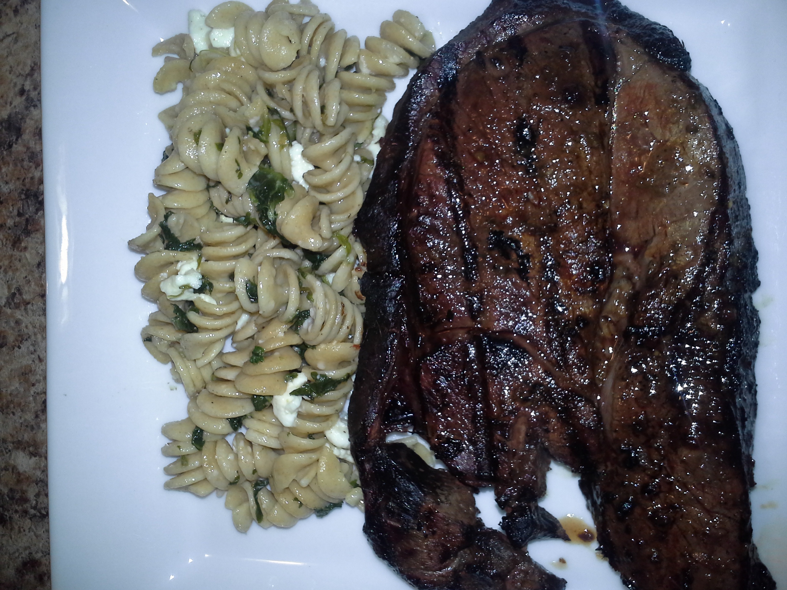 Cooked up some venison steaks for dinner. Let them soak in a little bit of red wine and put some roasted garlic and pepper sauce on them. Grilled them at 500 for 2 min a side then let rest for 2 min as grill cooled down. Wasn't my best steak. Also cooked up some bacon wrapped mushroom caps. These turned out good. Did them indirect around 300 till bacon looked crispy.