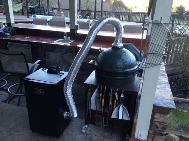two similar, but different set ups.Felton, Ca. 2-LBGE, 1-Small, PBC, PK360, Genesis Summit, Camp Chef Flattop, Smokefire 24, Traeger Pro Series 22 Pellet with a Smoke Daddy insert, Gateway 55 Gal. drum, SNS Kettle w/acc.