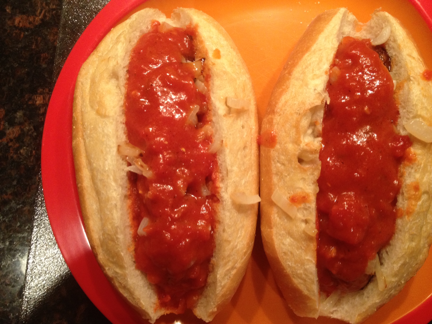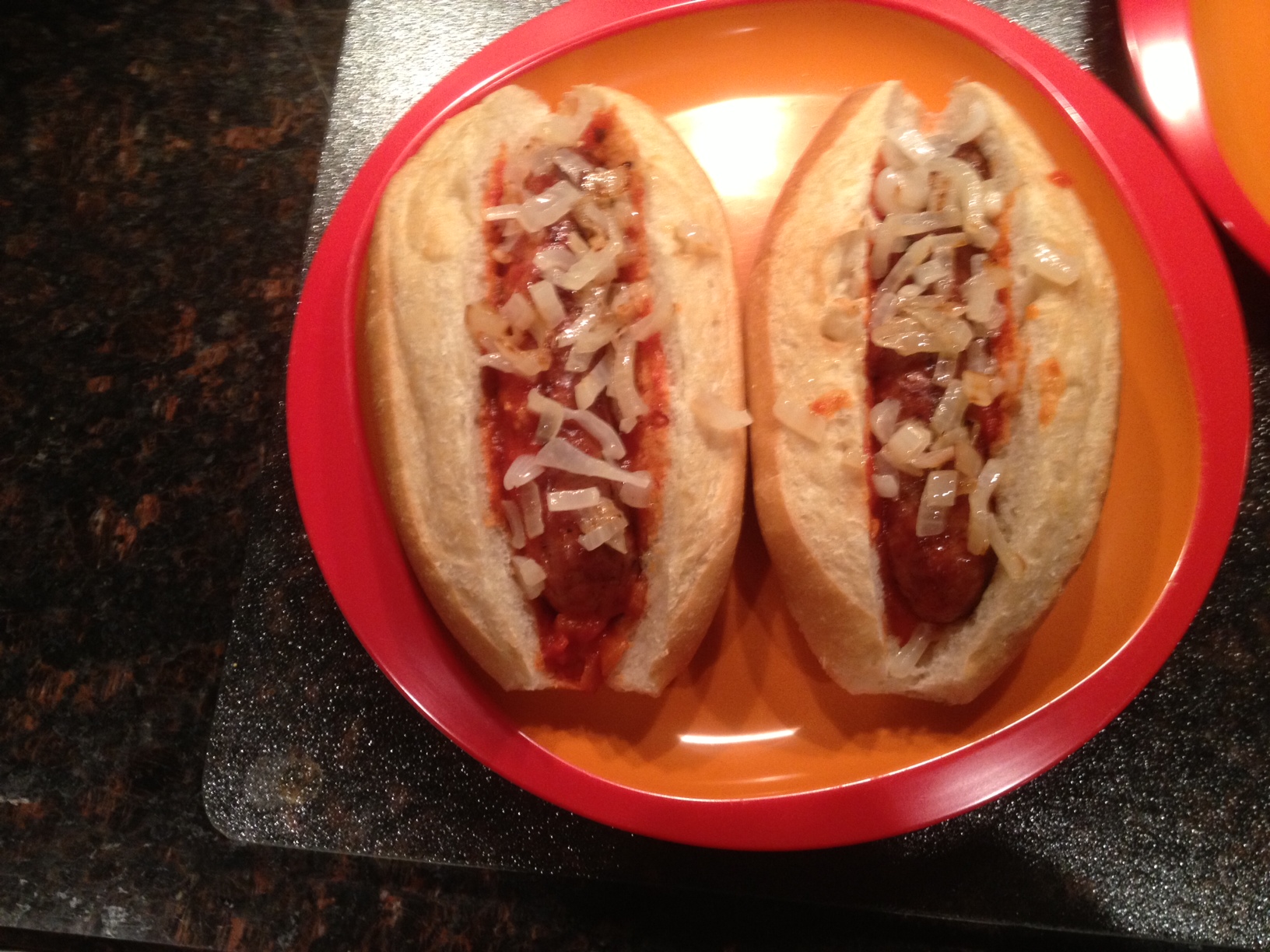 Girls night out allowed me to cook something really bad for me. Following Doc's lead, I put together two italian subs with marinara sauce, grilled onions, provolone cheese, and hot italian sausages. They were tremendous - now I have to clean up and hide all of the evidence before she gets home!