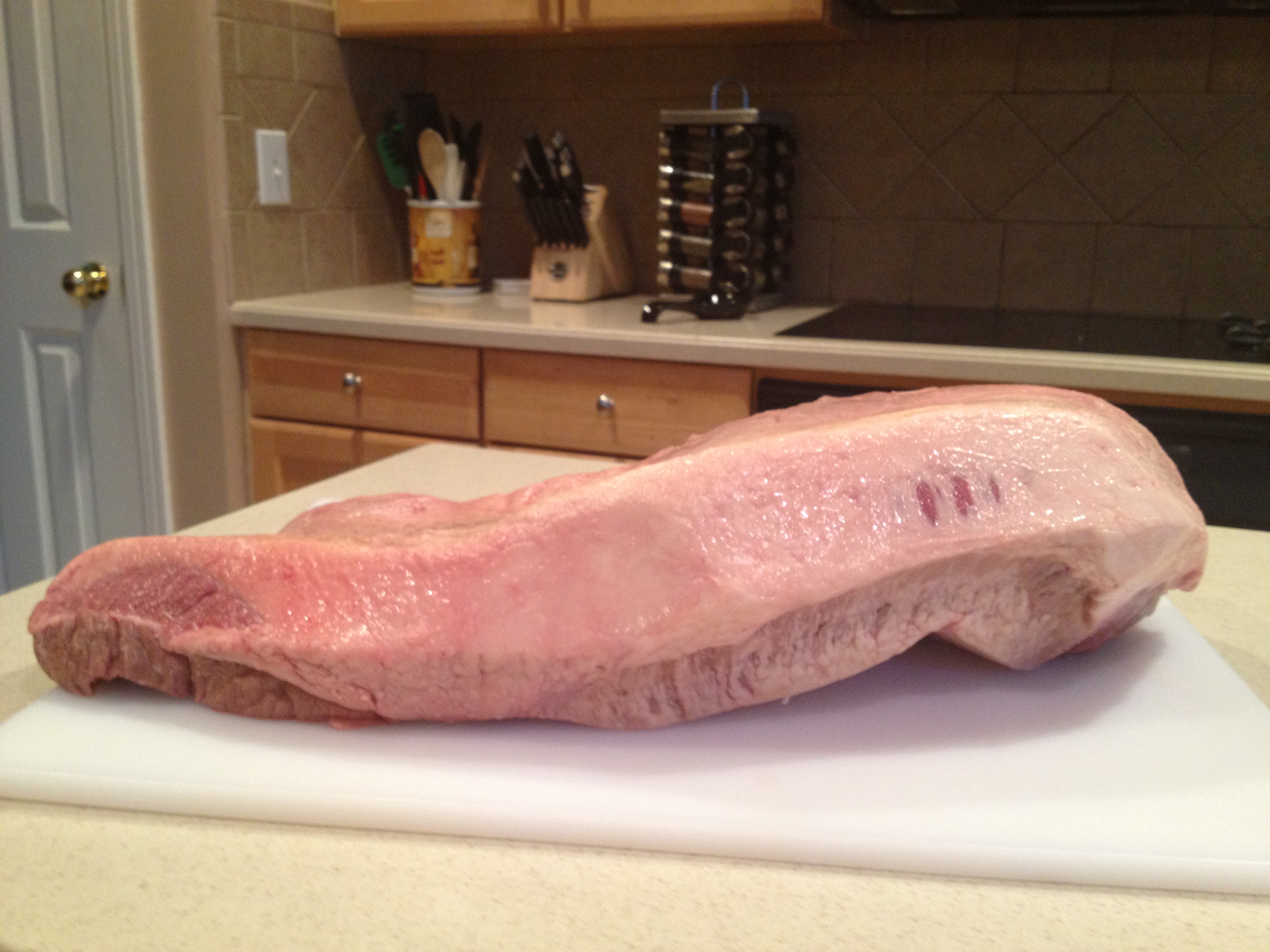 Boiler, looks like a nice chunk o chest there. Don't be afraid to take the fat off the point end so you have tasty bark on the meat. I leave the fat on the bottom of the flat, but all the fat comes off the top of the flat. You'll do fine!