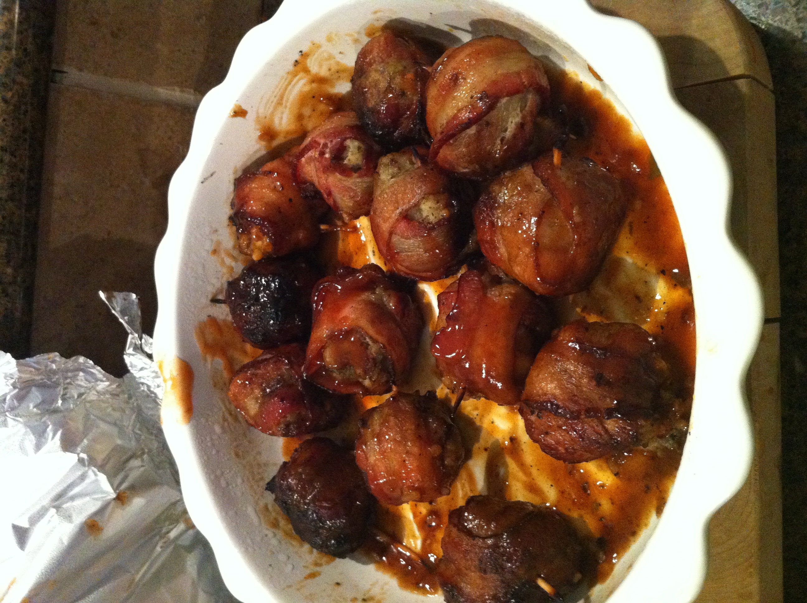 Used the plate sitter.... Bacon wrapped boudin ....slice 1" or so...wrap ..... Cook off direct heat :-\" general dollar BBQ sauce, with a good bit of Tabasco !!