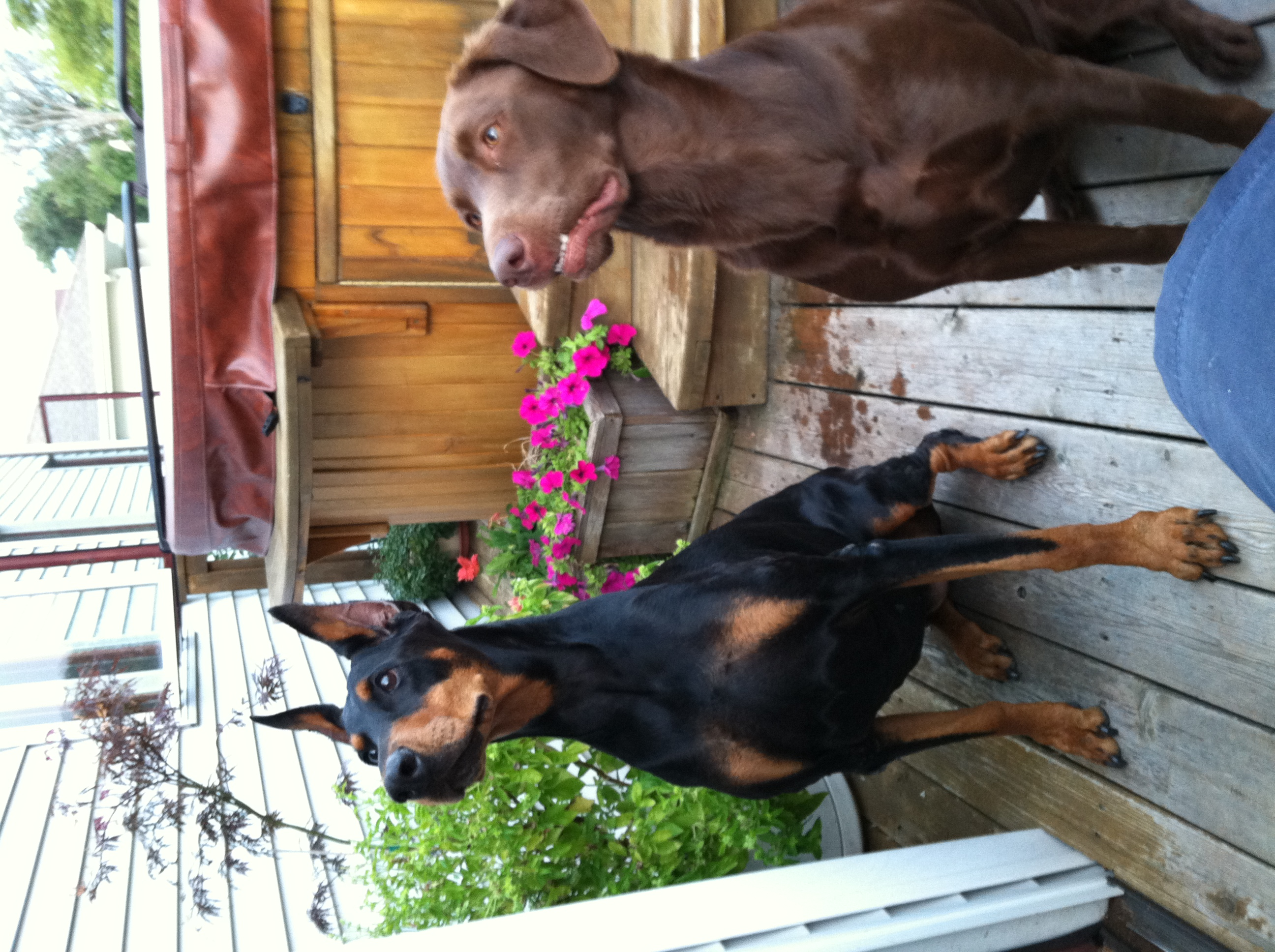 My girls Reagan and Coco waiting patiently for their ribeye scraps!