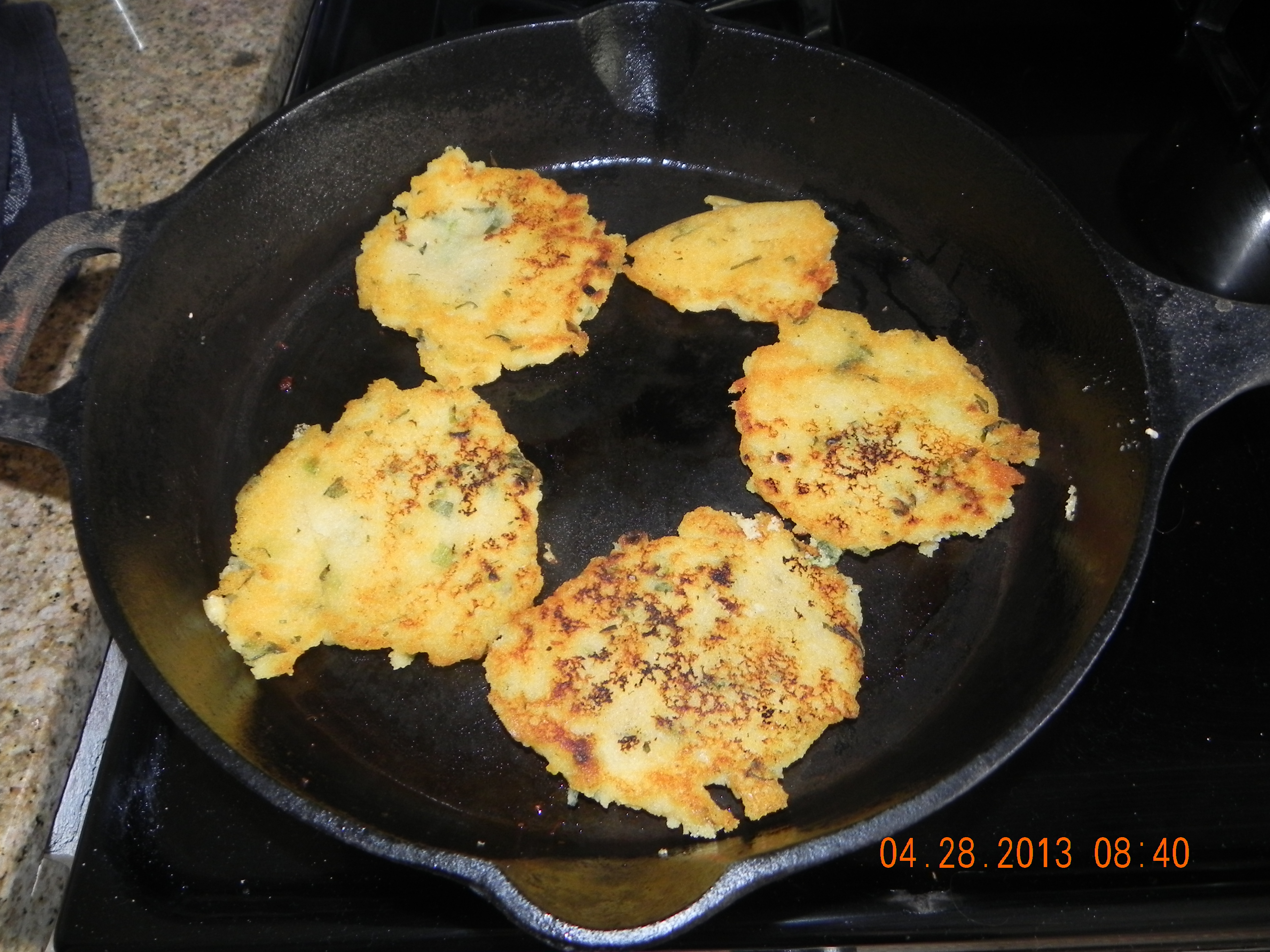 Made some Johnny Cakes with parmesan and fresh basil on the CI (inside). They were incredibly easy and very tasty on their own. They could easily be made on the egg.