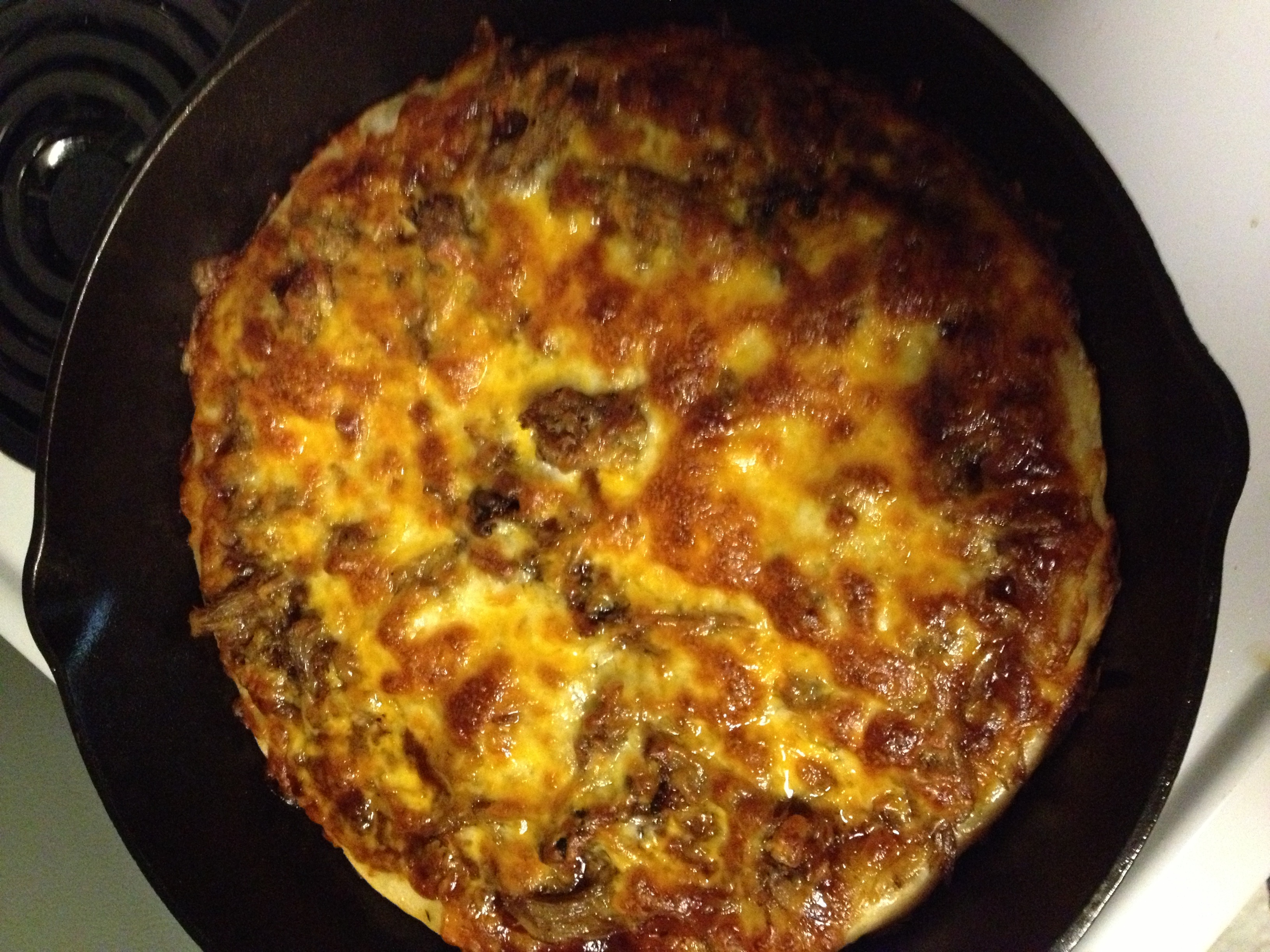 Yesterday's Boston butt is today's salad and pizza. The pizza (cooked on the big clock) is just BBQ sauce, pork, and cheese. The salad has lettuce, tomato, pork, pickled okra, pickled jalapeños, boiled eggs,carrots, pineapple, cucumbers,cheese, and ranch.