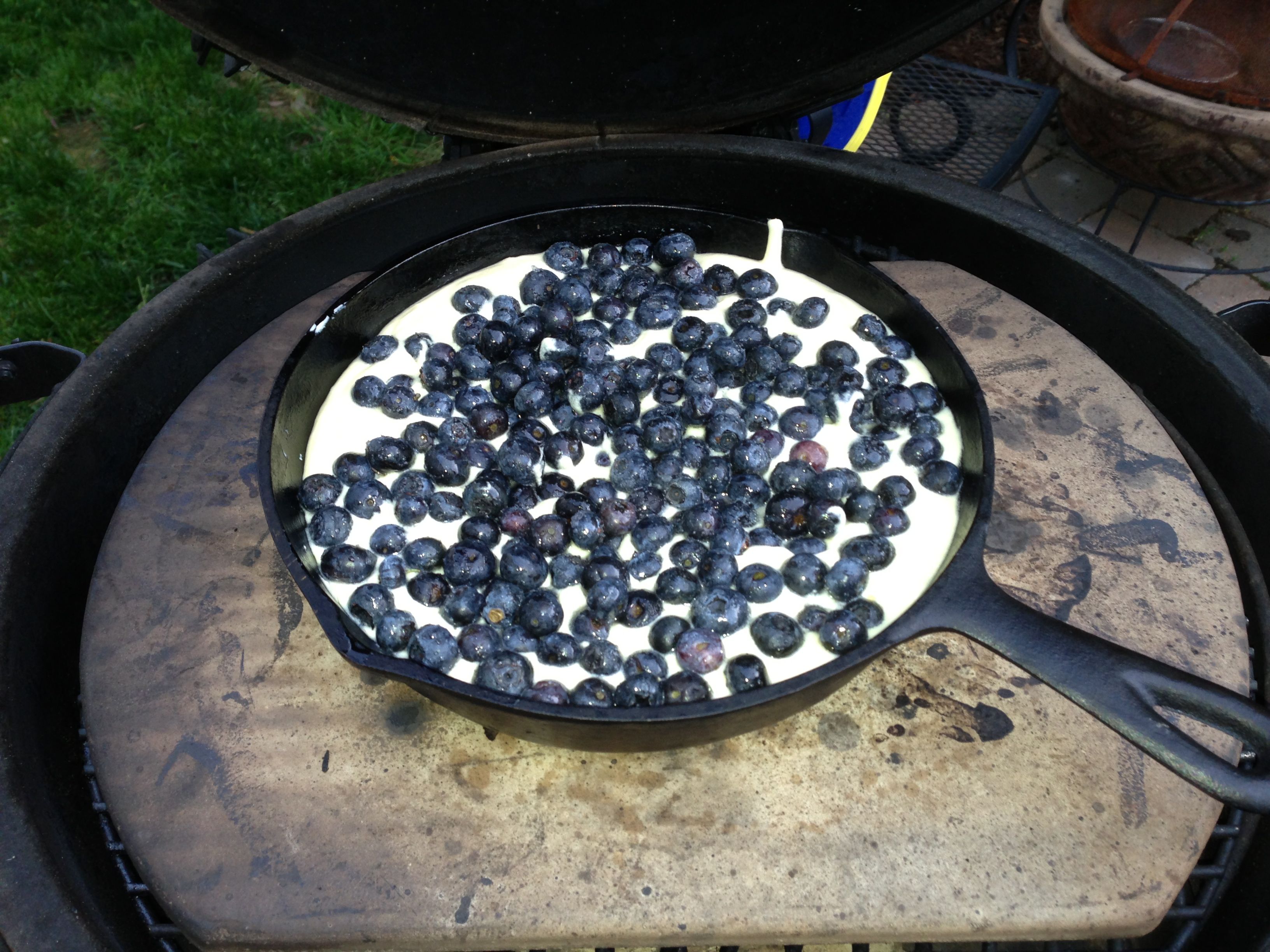 Bonus #2: last few pics are of a blueberry cake the Queen made a scratch cake (Swans Down cake flour), put in a CI skillet (8") and covered with fresh whole blueberries covered in turbinado sugar and left in the fridge for a few hours. 40 min @ 400F it was great with Vanilla ice cream.