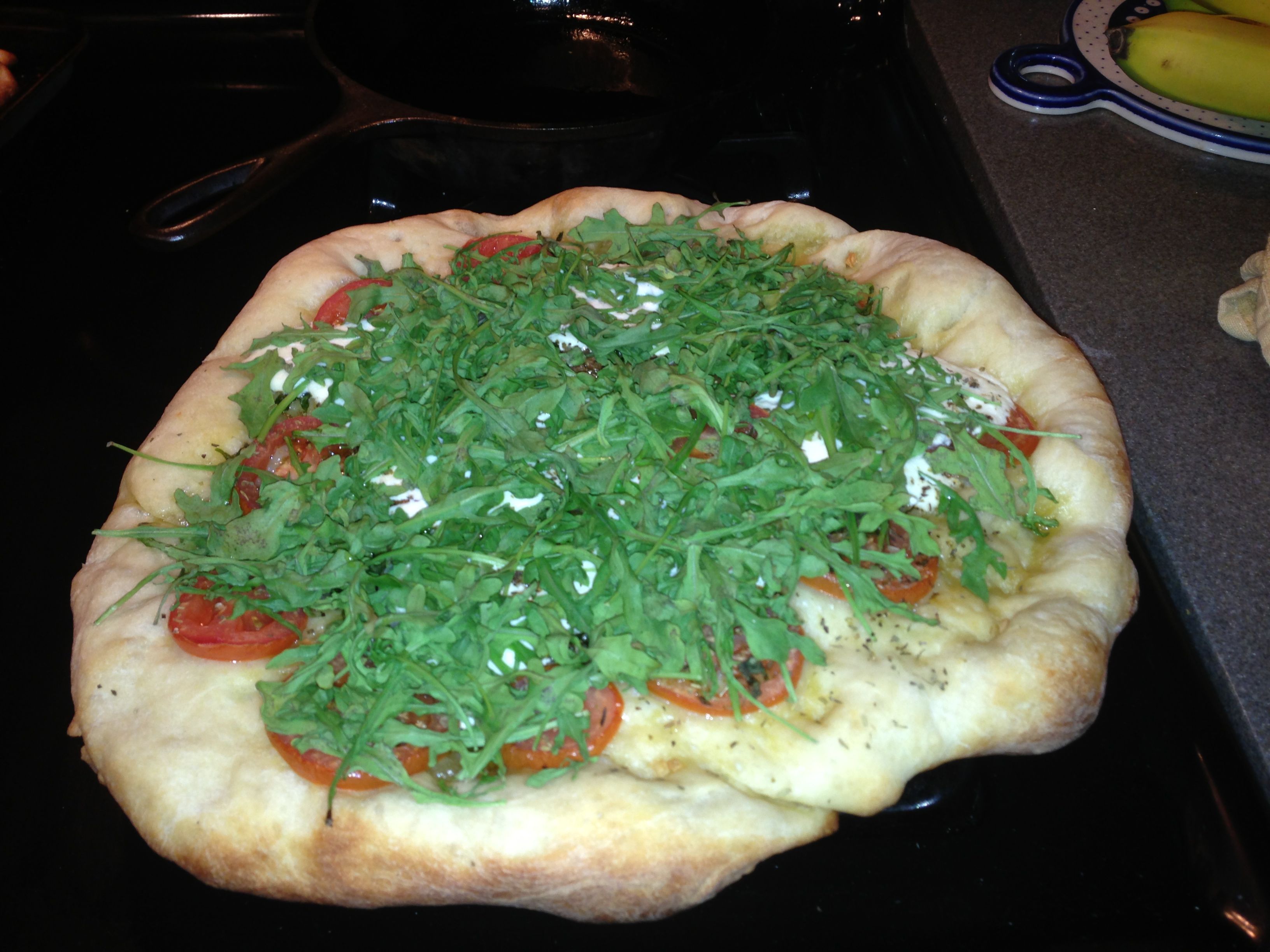 Friday is pizza night at my house, the kiddos are ready every week. Here are some pics. Did four pies. Pepperoni & cheese; Veggie (cremini mushrooms, onions, red/yellow/orange sweet peppers); Arugula #1 (EVOO, minced garlic, tomatoes, ricotta cheese, fresh basil, no pizza sauce) - when it's done, cover with fresh arugula and let it rest before serving; Arugula #2 - same technique but only prosciutto and arugula. Used platesetter, 500F dome temp. Cooked at the gasket level for approx 10-12 minutes, turning 180 degrees halfway.