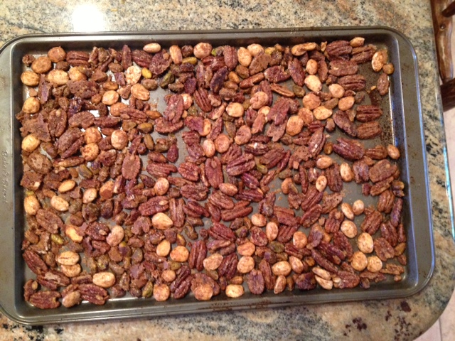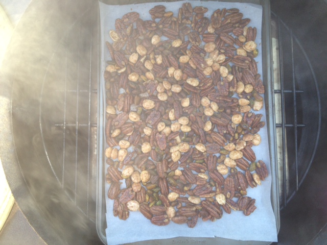 Had some friends and neighbors over the other night for the best rib-eyes I've ever done, but that's another thread. Our neighbors brought some appetizers, one of which was some sweet and spicey nuts she did in the oven. She got the recipe off of the Food Network and the only thing I didn't like was that it was a recipe from Jill & Joe Biden. I know there can be a lot of comparisons between the Bidens and nuts, but let's not highjack the thread and go politcal. :-) I decided to try these on the egg and they are awesome! Use them as an appetizer, or a few pulses in the food processer and on top of a salad, or on top of ice cream for dessert. I didn't have the cashews it calls for, so I used pecans, pistachios and almonds. Give it a try with any nuts you like.