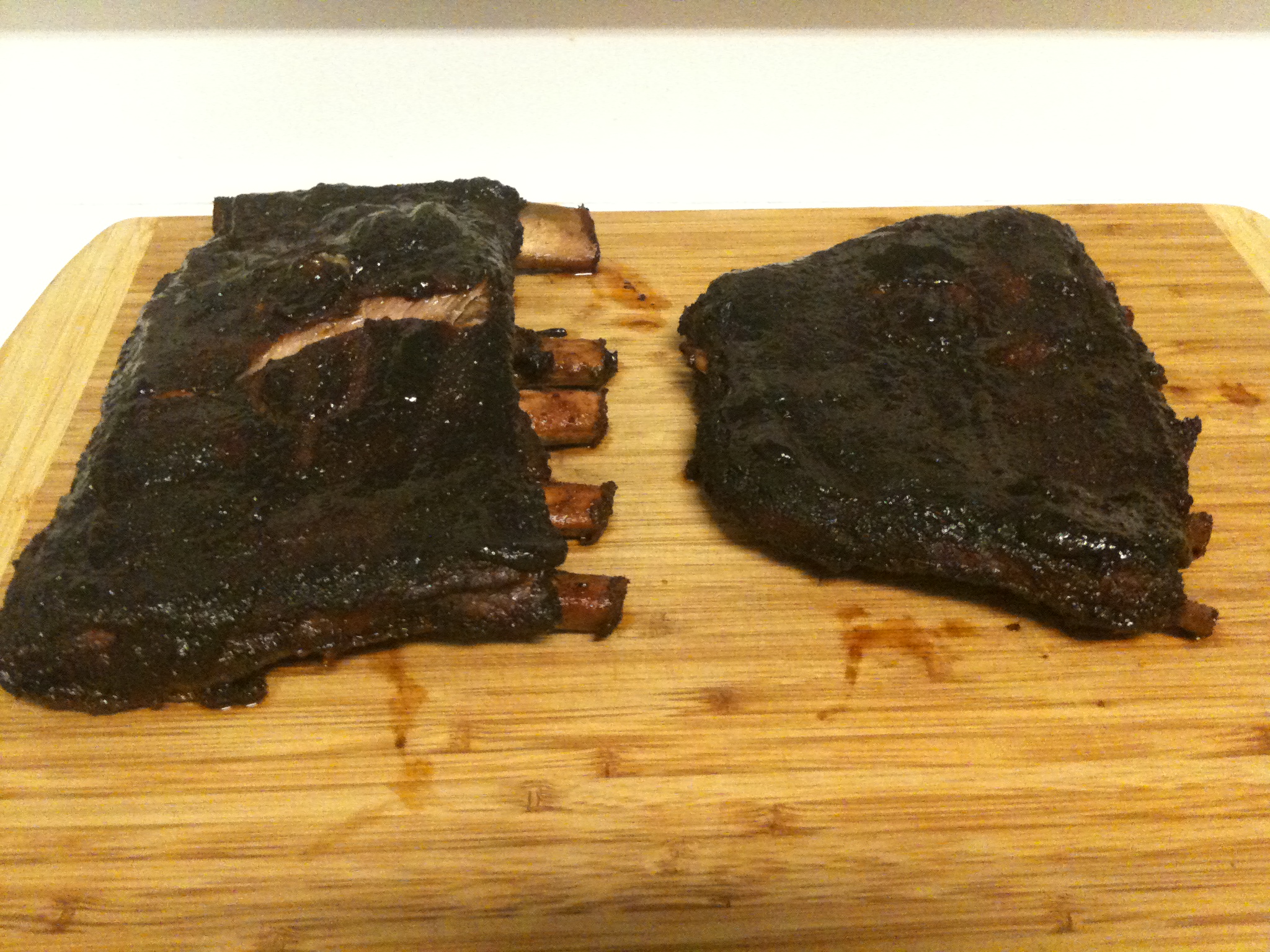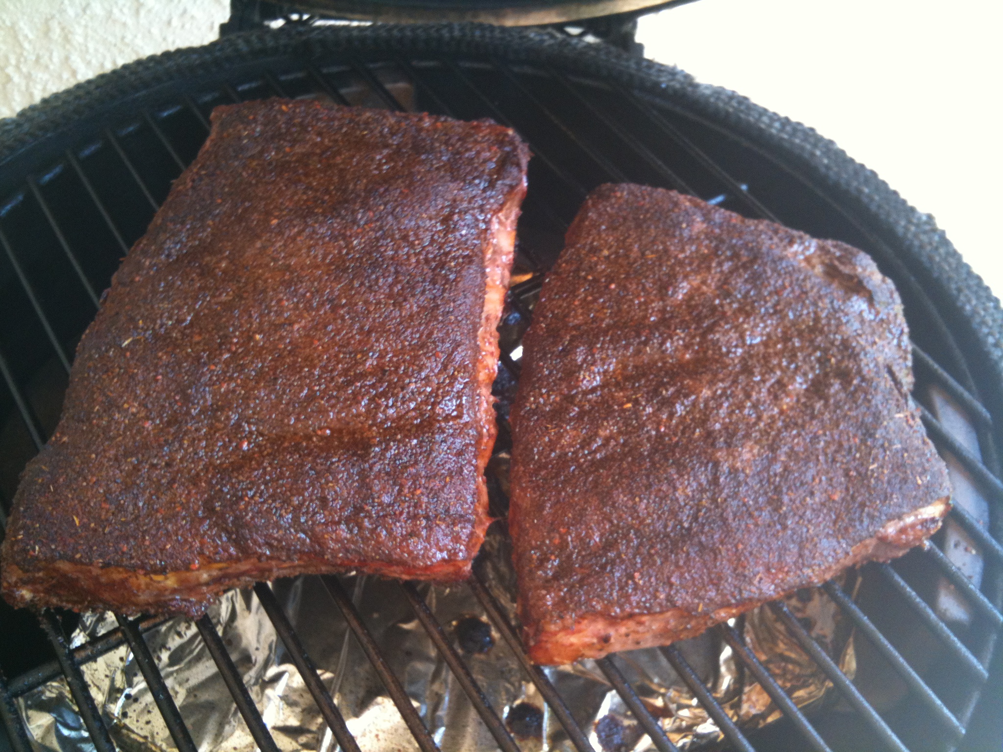 Tonight it was ribs. Rubbed with mustard, dusted with my own rub. 250 for 2.5 hours, then into a foil pan with a tiny bit of apple juice lining the bottom and glazed with honey (covered) for another 1.5 hours. 30 more minutes, uncovered with glazing of sauce every 10 minutes. Turned out great but definitely not completion style, they literally fell off the bone. Wife loved 'em though so I win