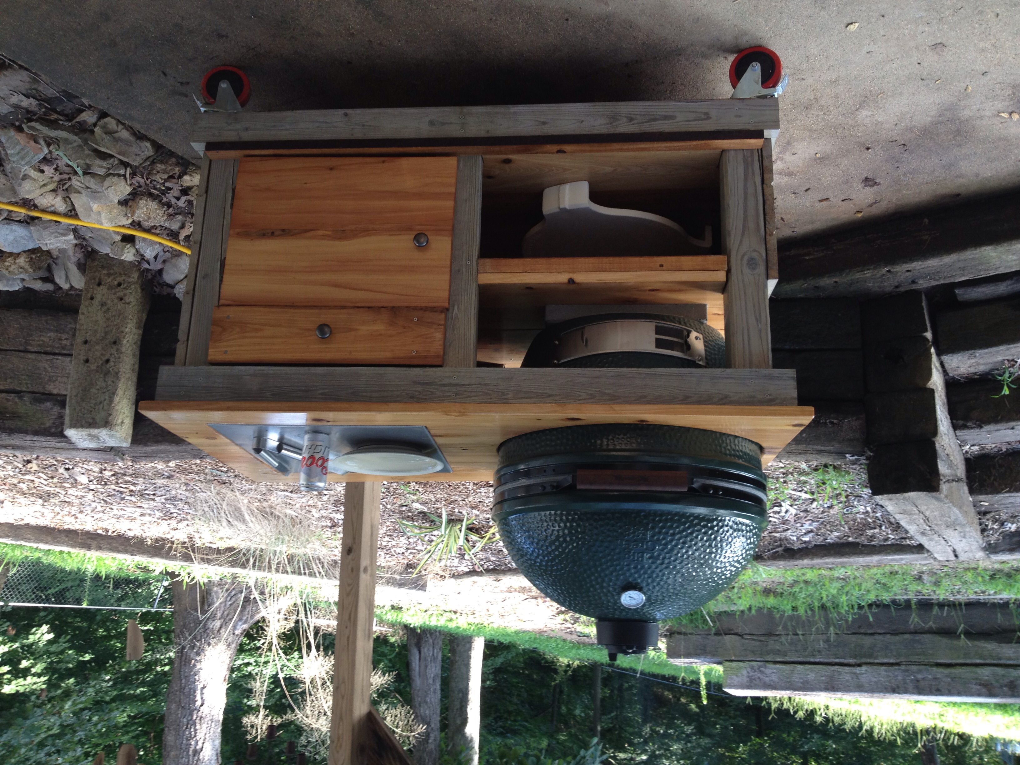 What I'd like to have and or try to build is a separate table with wheels that I can put next to my BGE. I've seen then online but really don't want to spend three-hundred dollars.I've slow smoked and eaten so much pork, I'm legally recognized as being part swine - Chatsworth Ca.