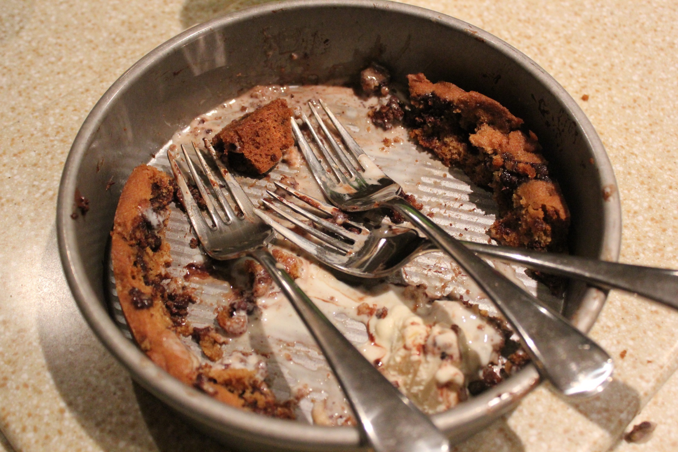 Here's a family favorite. Slightly undercook the chocolate chip cookie, throw on some ice cream and chocolate syrup! Great!LBGE, Burgeoning Accessories