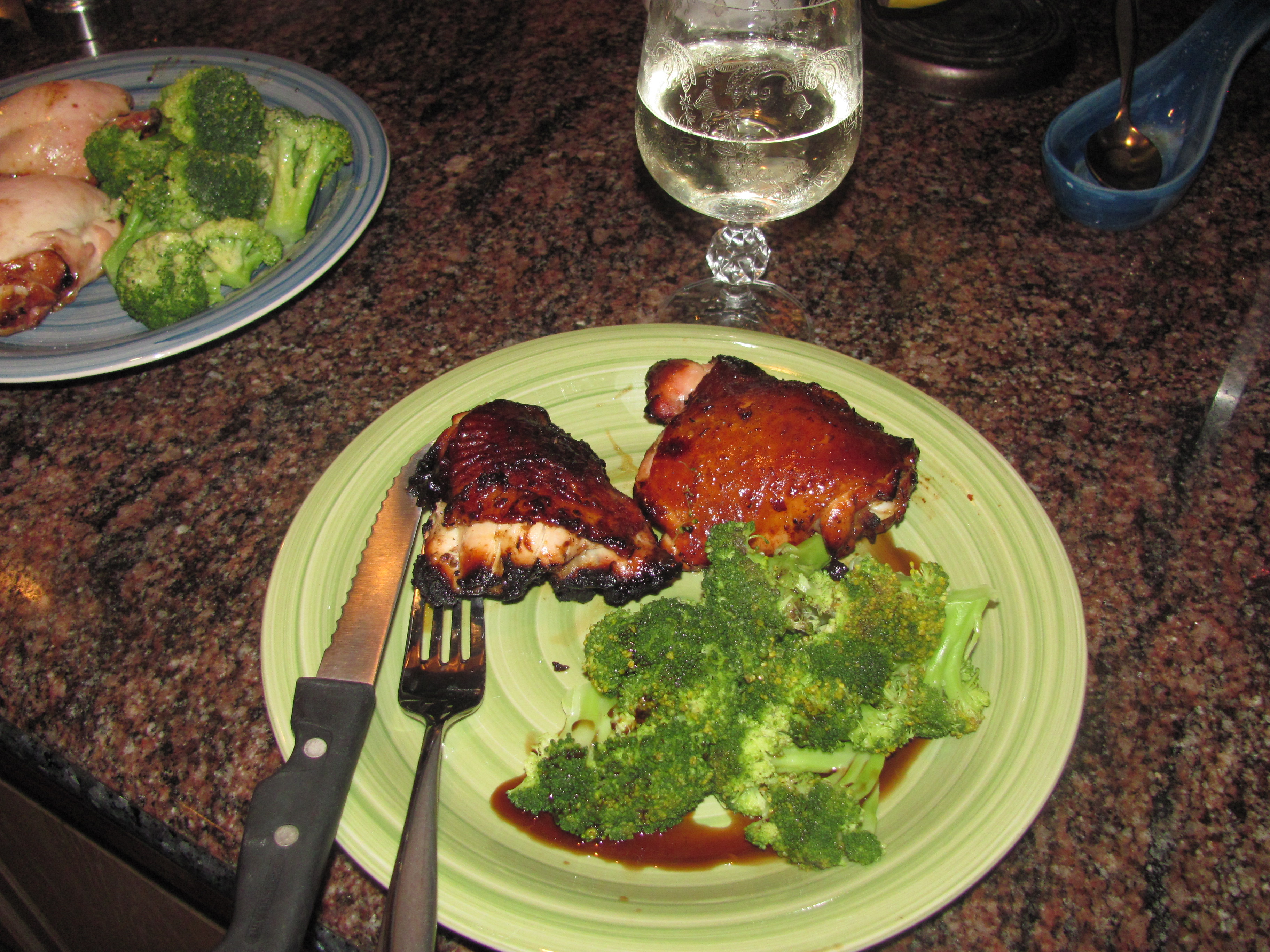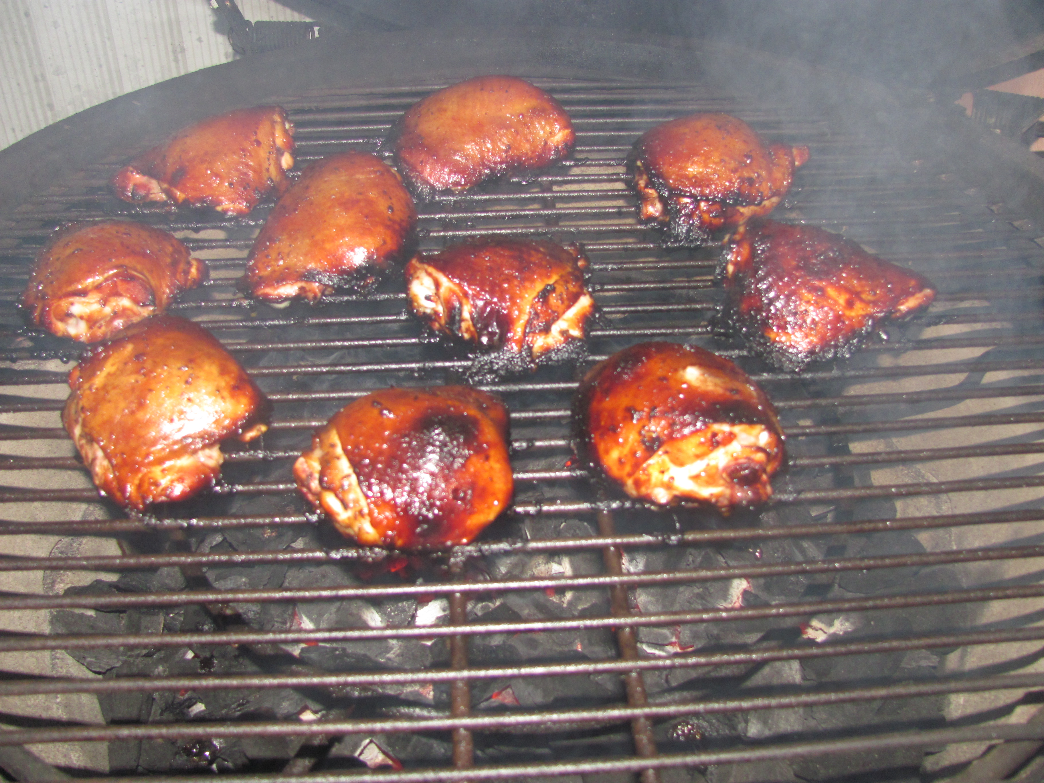 We had chicken thighs last night. Mine were very simple. Sprinkled with season salt and teriyaki sauce. Cooked at 450 direct.Mark Annville, PA