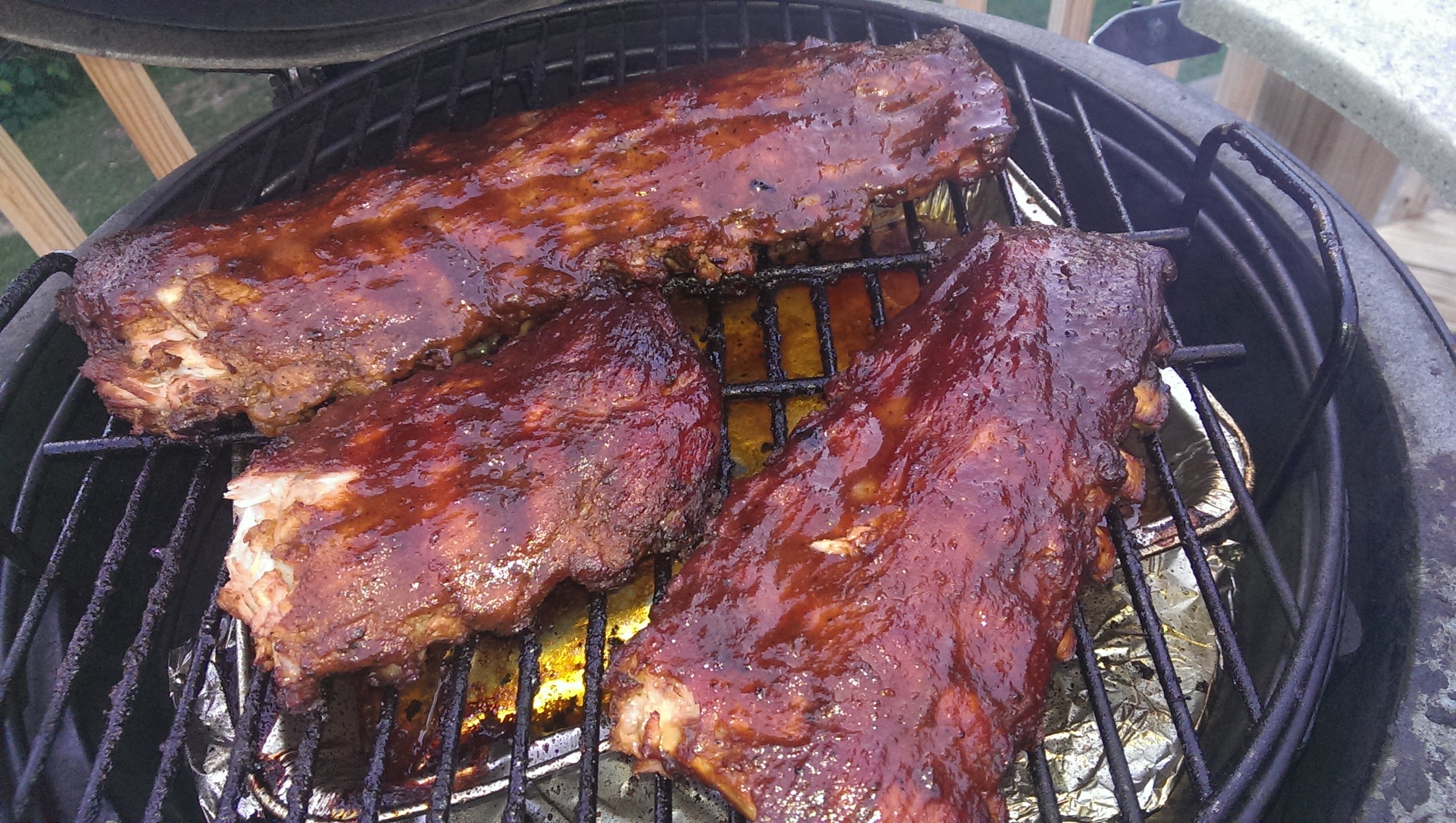 @philly35 - the ribs are on the grill for the entire cook. They go on the grill.@socalcajudo - it is not spray painted. It came that way.@CPARKTX - I used to make my own rub and sauces. Now I use Dizzy Dust on ribs. And I pick up different sauces to try at the grocery store. The wife likes sweet baby rays. I've been really liking old Carolina sauces. It's a local place here in the Cleveland area.@walrusbbq - correct. When I cook ribs today I do the last .5-1 hour direct. They usually only take about half hour. And I don't leave the grill until they are done. I will sauce and let them go about 10 minutes. Sauce and flip some more. Let it go another 10 minutes or so. I will flip every 5 minutes from here until I take them off if I haven't done so already.@Wylecyot - Sometimes I'll spritz with apple juice or apple cider. Or a combo of the two. Maybe some other concoction with a certain beer ,wine, or booze. All depends on my mood and what I'd like. I've foiled with nothing. I've added whatever I'm spritzing. I've added honey once. But I've never tried brown sugar. Skies the limit to your imagination. I just use what I like or what tastes good on ribs. In these pictures they went into the foil with nothing.-------------------------------------------------------------------------------Strongsville, OhioYes. I own a blue egg! Call Atlanta if you don't believe me![I put this here so everyone knows when I put pictures up with a blue egg in it]
