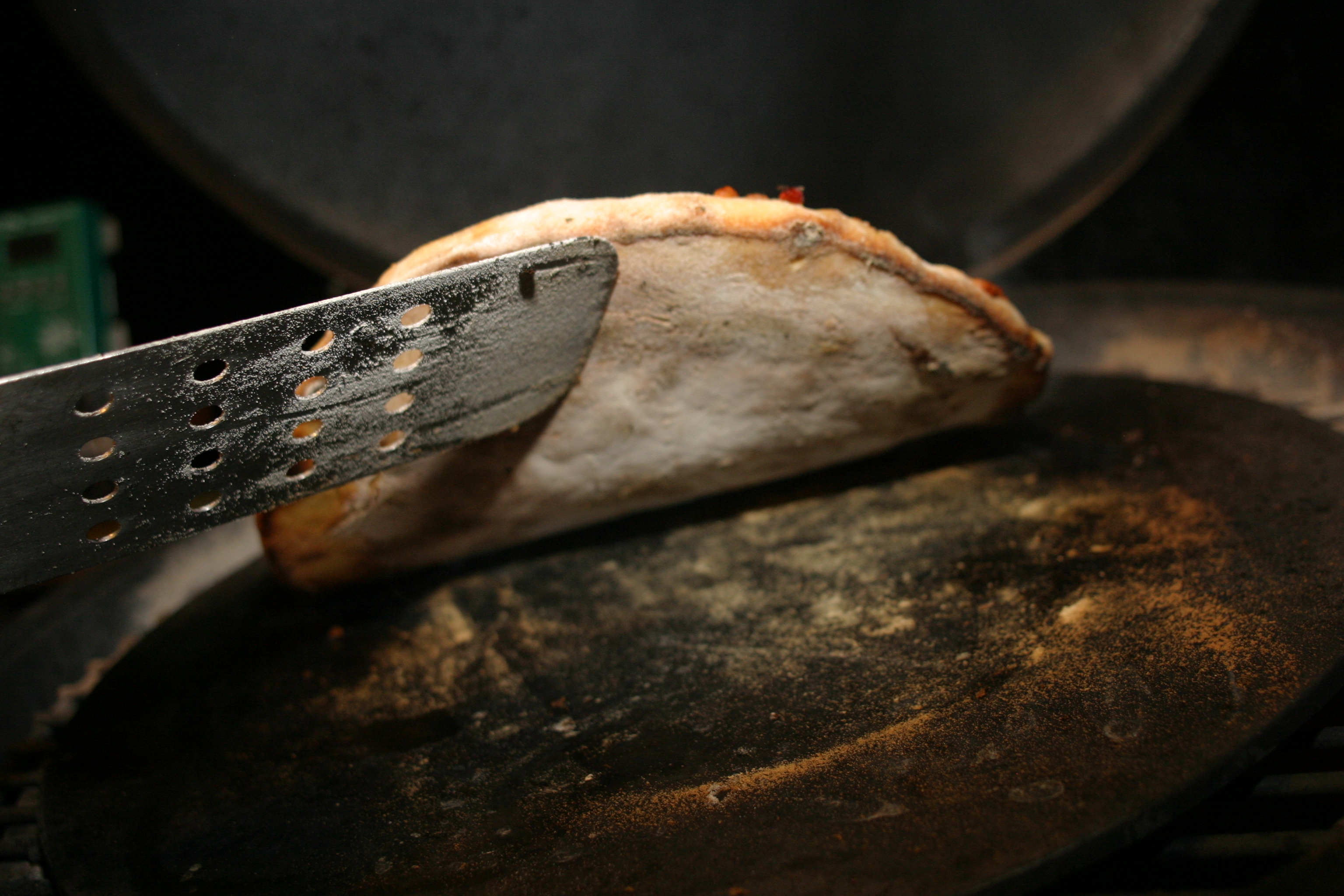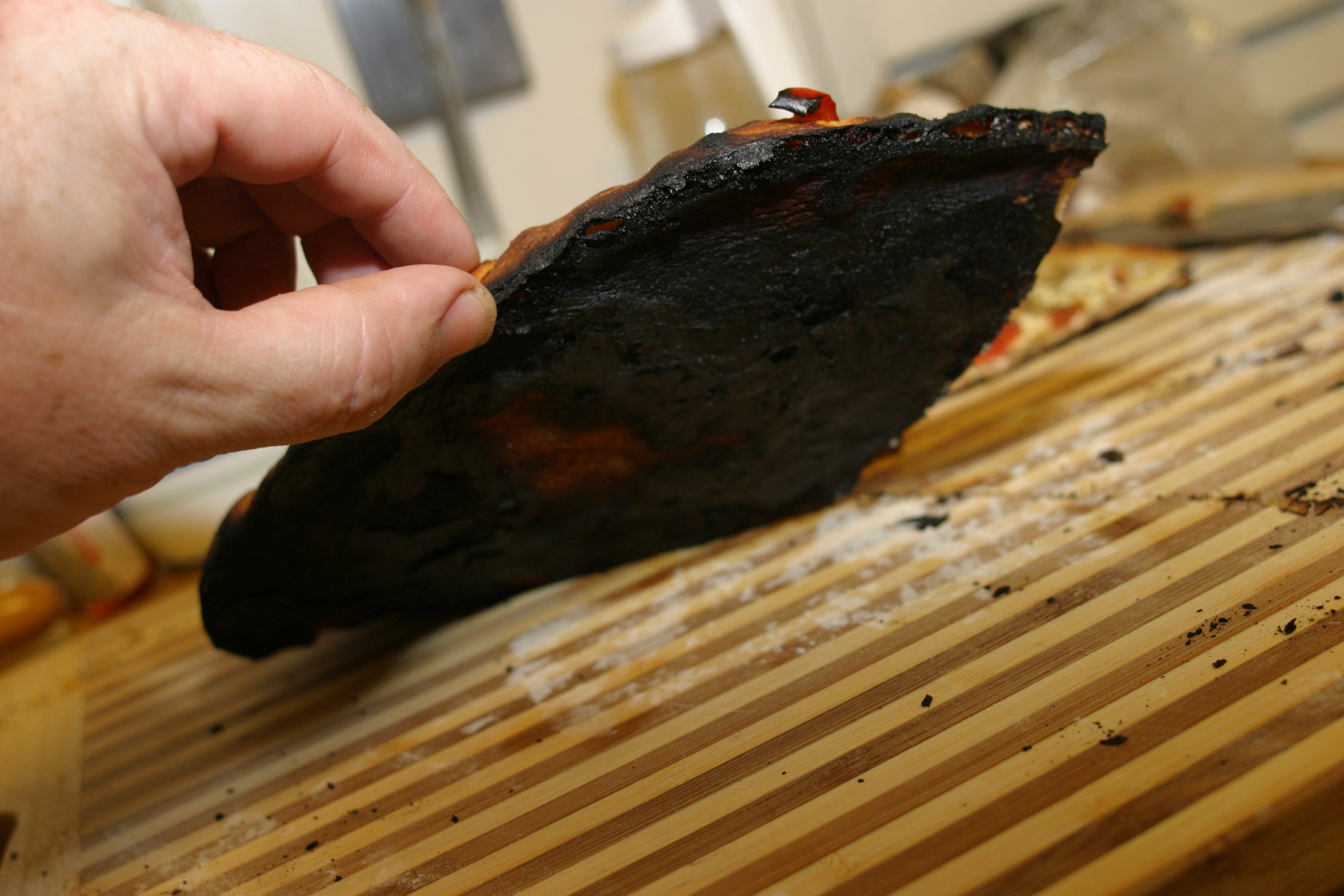 The first pizza was quickly reduced to a carbon briquette on the bottom.