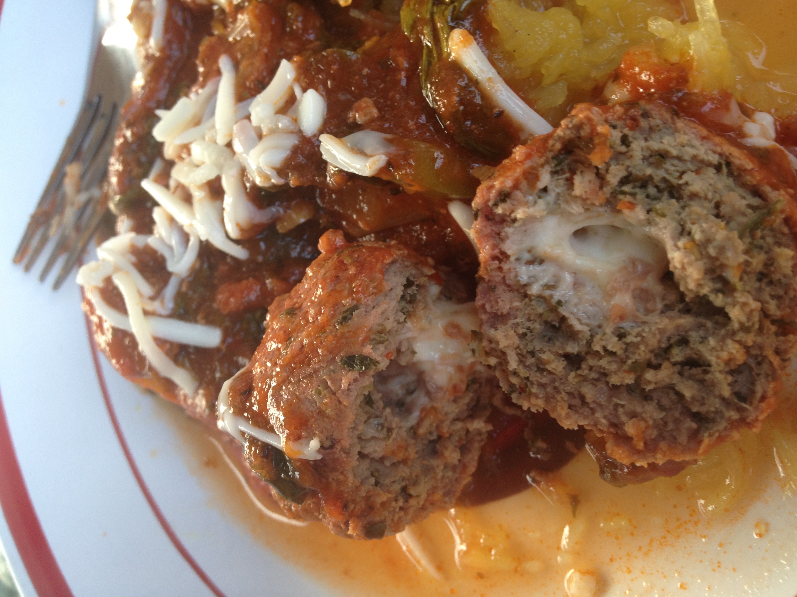 Stuffed meatballs, sauce and spaghetti squash
