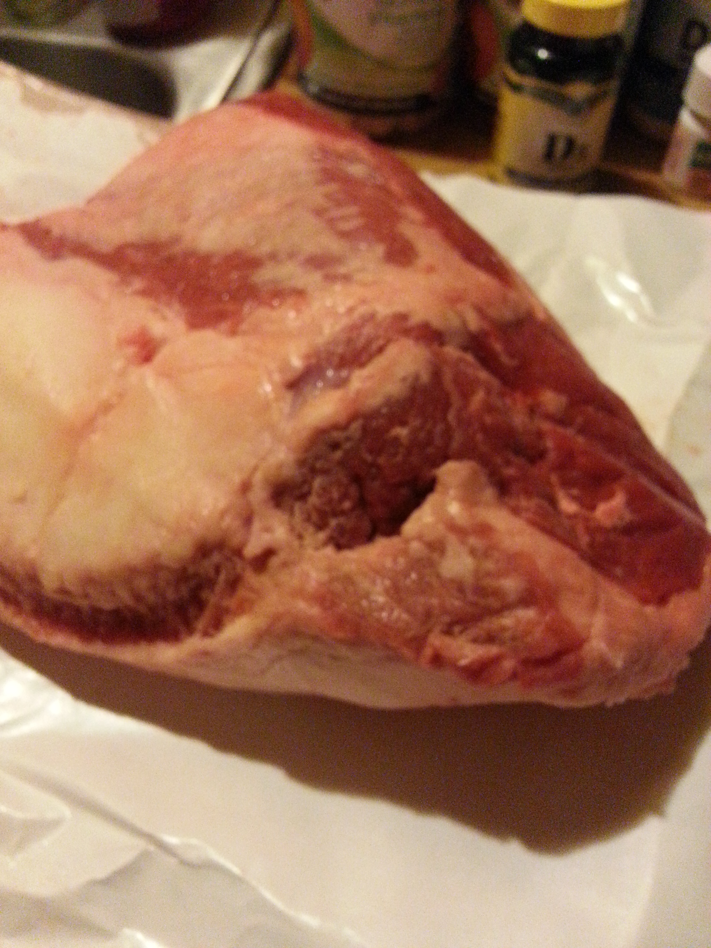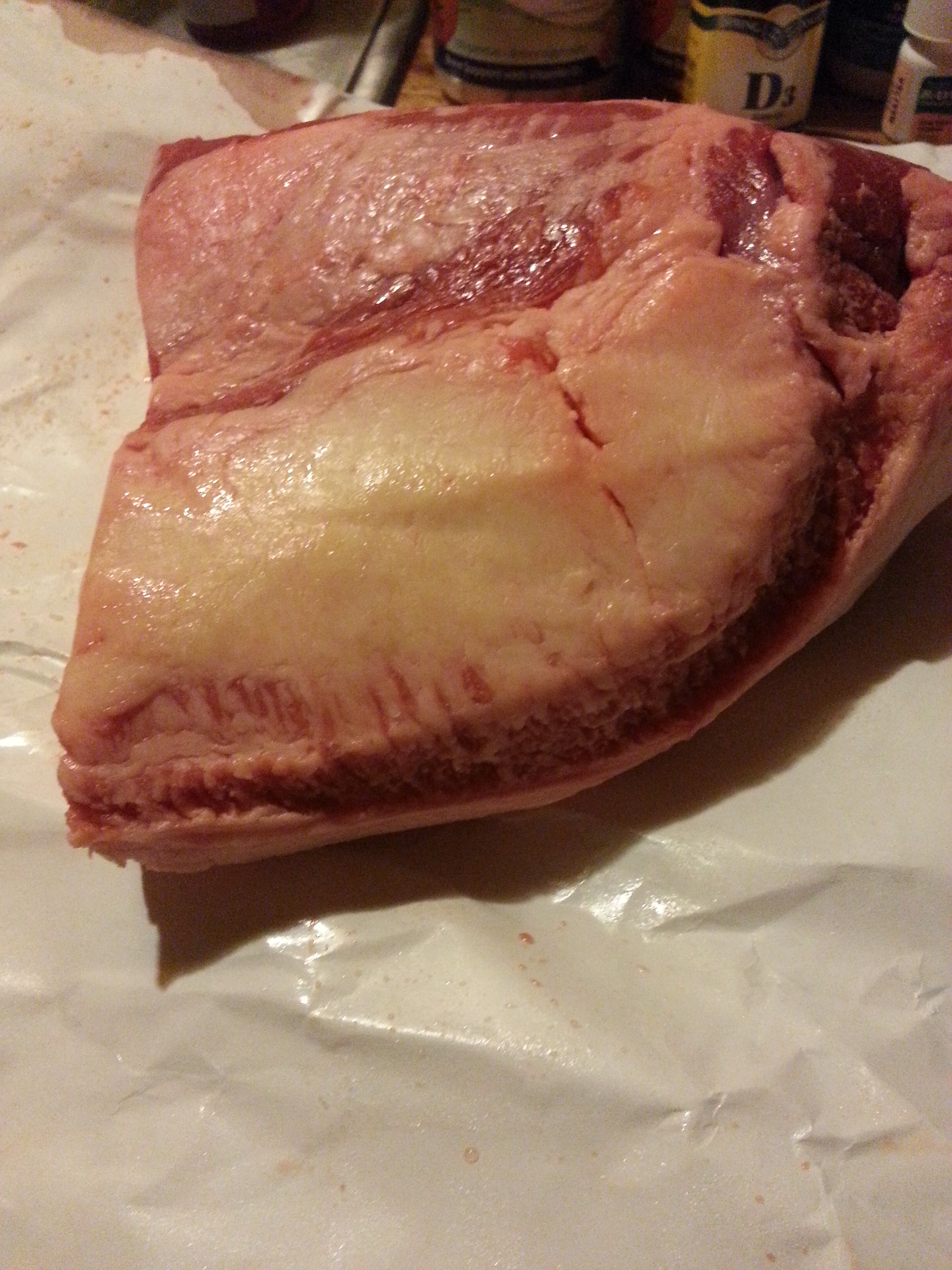 He gave me two options. The first, you see above. Just slice in half, to whatever "final" weight I chose. This particular piece was a little shy of 11lbs - so I ended up with almost "half" the packer.