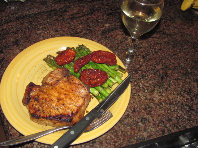 Pork Chops, Asparagus and Sun Dried Tomatoes.