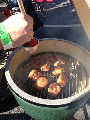 4. Flip every 5 minutes or so. After about 20-25 minutes or whenever you feel "they're there," or around 170 or so for you thermapen guys, baste with honey and flip for 2 minutes, baste other side and flip for 2 minutes, then pull the thighs off.
