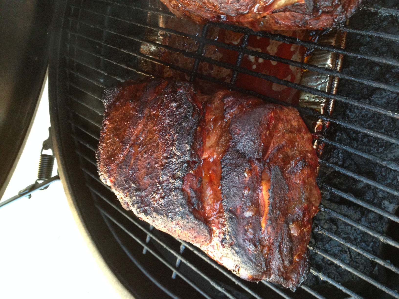 ok just pulled them at 11am.....i hope i havnt screwed up because the temps were in the mid 190's a bit ago and i wanted to get closer to 200....when i checked back a few minutes ago...one butt was at 200 and the other 203.....im hoping the 203 hasnt gone too far......currently they are in foil, wrapped in a towel sitting in a cooler.  i'm crossing my fingers.