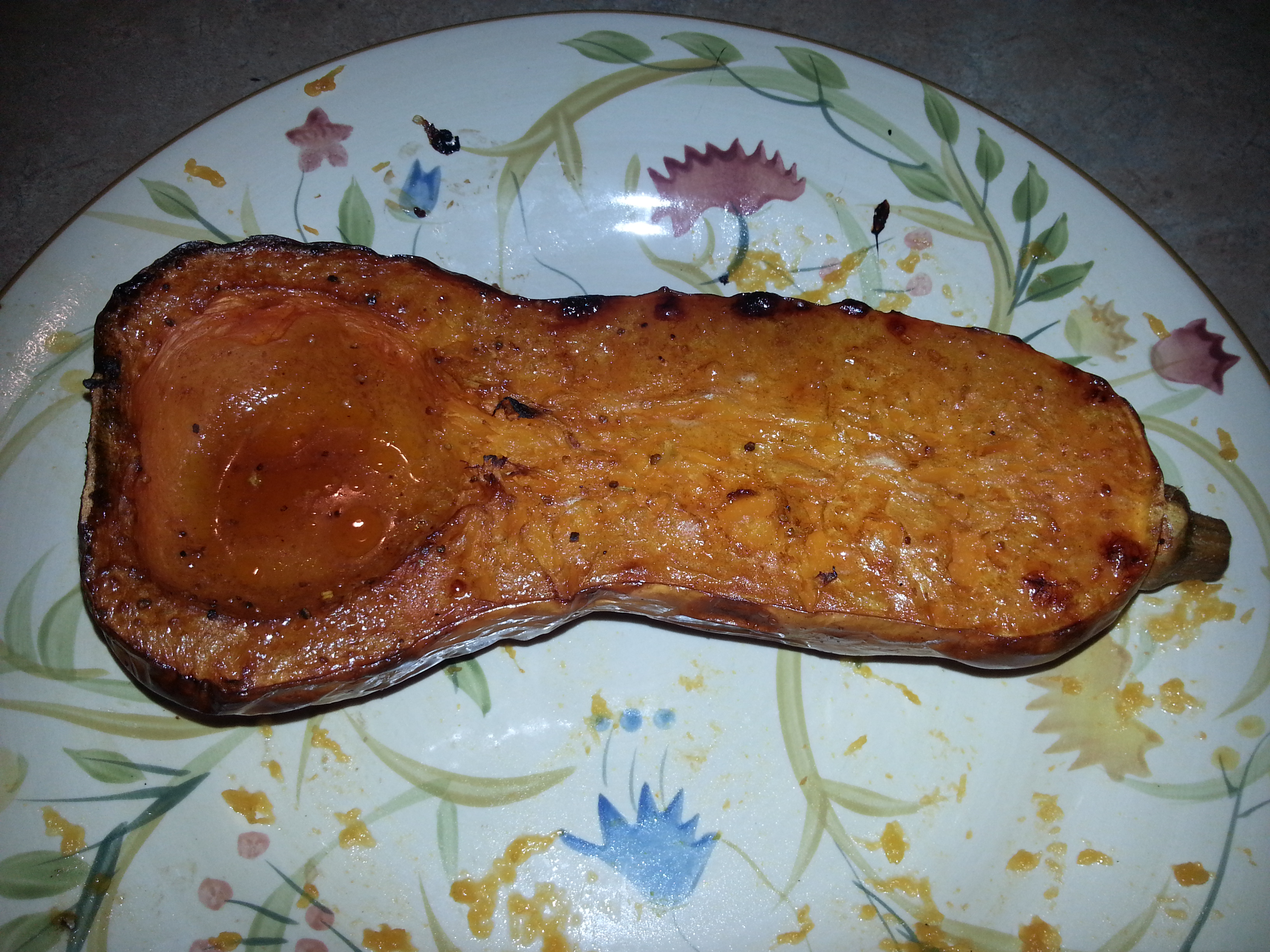 EVOO and DP Pineape Head on the butternut squash. Apples were cored and filled with a butter/sugar/cinnamon mix. Worked out well. Indirect around 400*, butternut took about 45 min to 1 hr (didn't do a good job of splitting evenly), apples were 30 min or so.