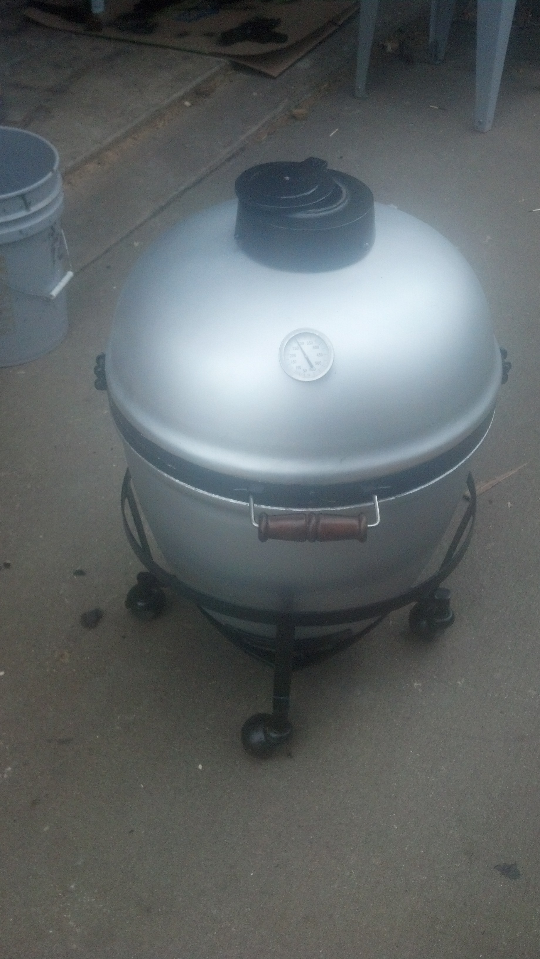 I found a 1997 Grille Dome... For $110, cleaned and painted... Works fine. Definitely won't be searing any steaks on it. Hey, $100. I hate the silver but it's what I had in hi temp spray paint.Green egg, dead animal and alcohol. The "Boro".. TN