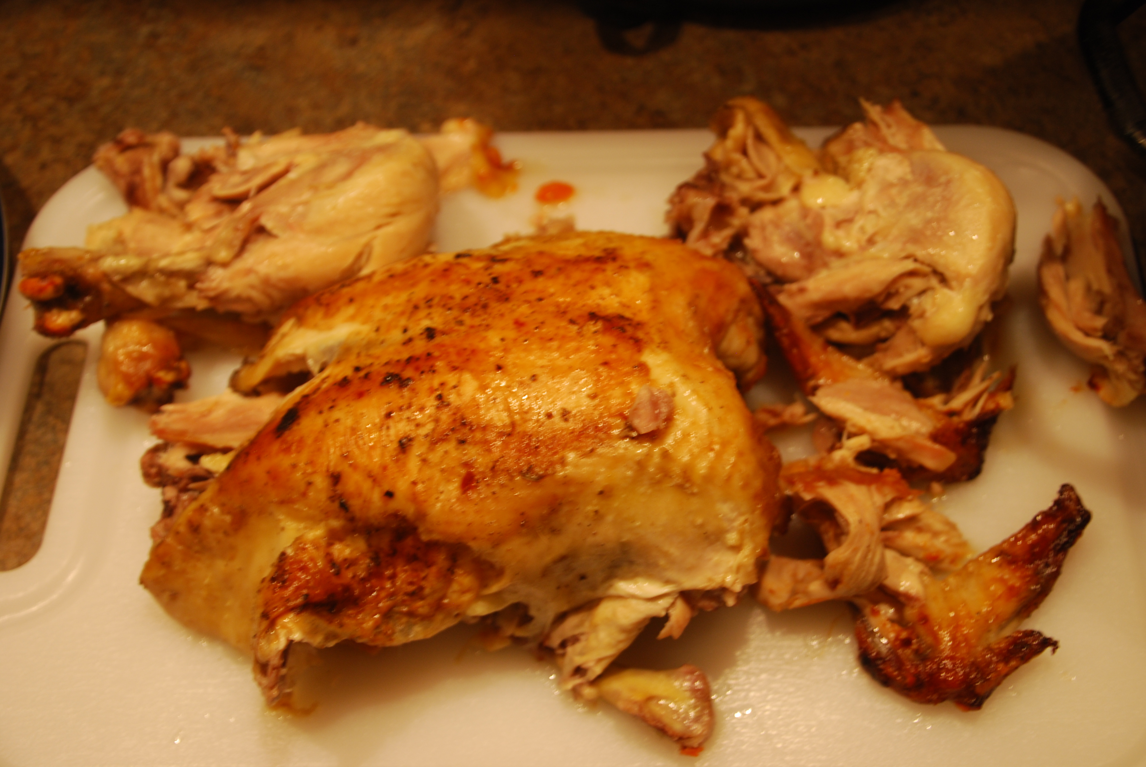 Very loosely following a Cooks Illustrated recipe for French Chicken in a pot. Six pound bird, seasoned up with butter spray, S/P, Poultry Seasoning, and a little Italian Seasoning (I thought it was the pepper grinder at first - grabbed the wrong one).