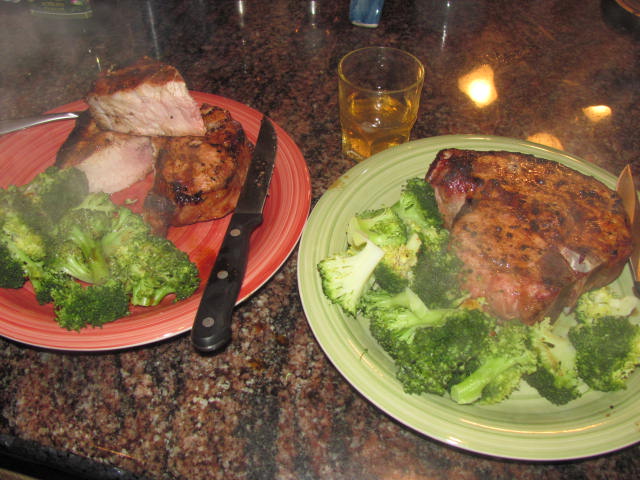 Guess pork chops are on the menu. Haven't had them in a while.Green egg, dead animal and alcohol. The "Boro".. TN