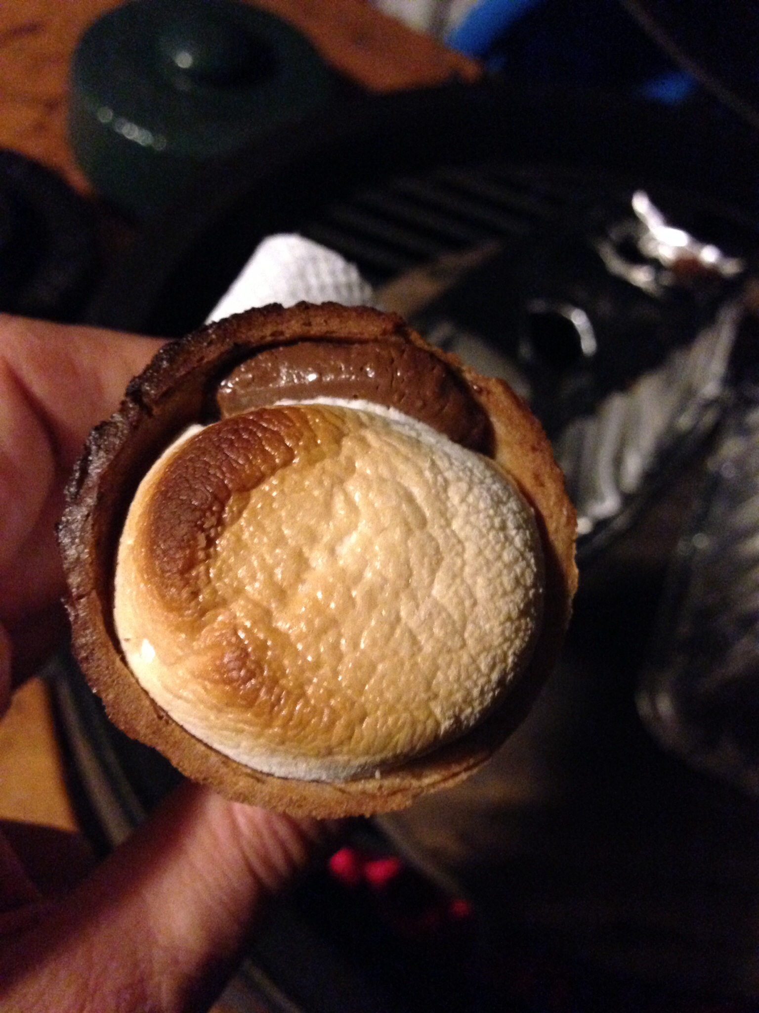 We made a huge mess the other night doing s'mores the old-fashioned way - roasting marshmallows on a stick, then sandwiching and melting them atop the platesetter. Then again, many beverages had been consumed by that point in the evening, which may have contributed to the mess.