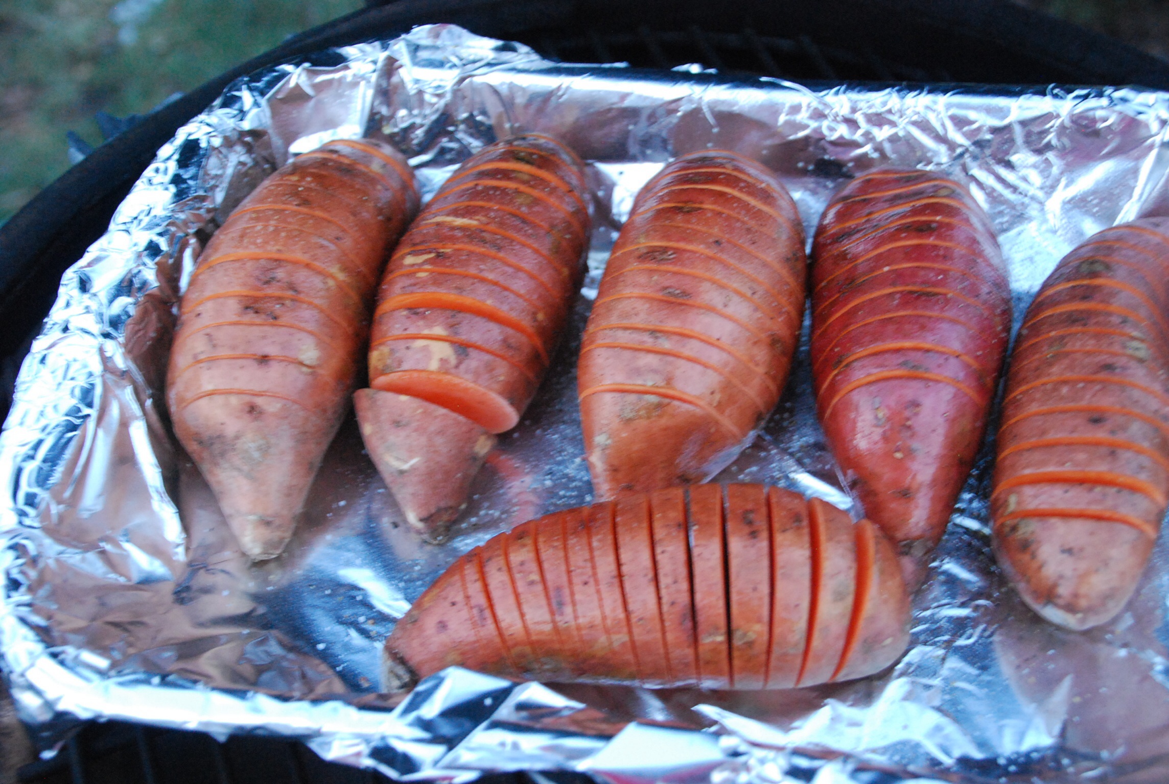 Last weekend I made Hasselback sweet potatoes. Baked at 350 for about an hour and 15 minutes until soft. I don't have a pic of the finished potatoes, but after they were soft, they were spread with a mix of brown sugar, melted butter and nutmeg, making sure some went in between the slices, and then topped with mini marshmallows and back on the Egg at 450 for 10 minutes until the marshmallows browned. Fantastic__________________________________________It's not a science, it's an art. And it's flawed.- Camp Hill, PA