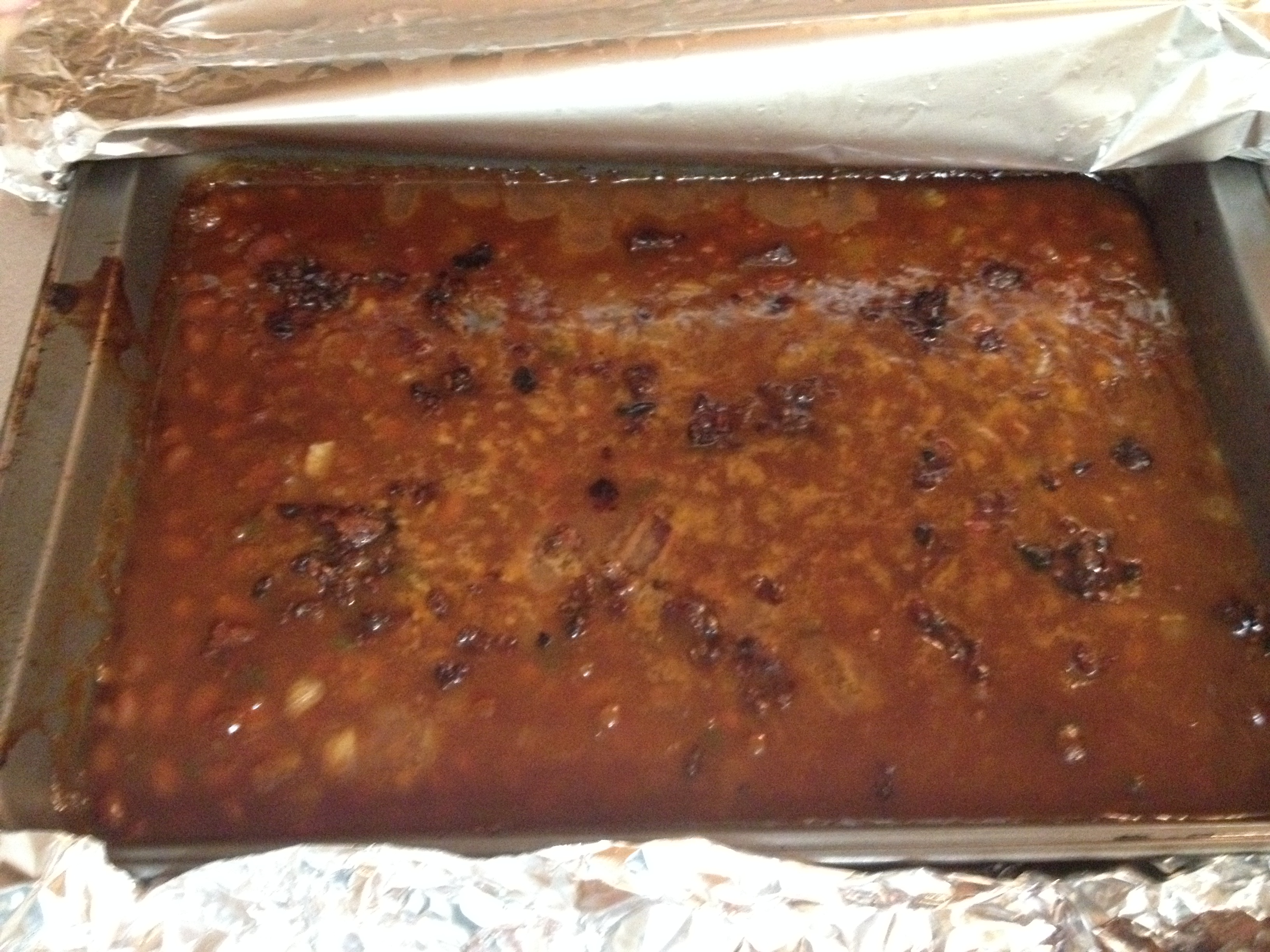 The ham (and beans) are on the smoker for a total of 3 hours each. I put the beans on slightly later to allow for the short rest the ham is given when it is done. The ham goes for 2 hours and then gets glazed twice at 30 minute intervals. Once the ham was on the smoker (Egg) there was plenty of time to make the glaze. It used: Apricot halves (drained), molasses, soy sauce & ketchup.