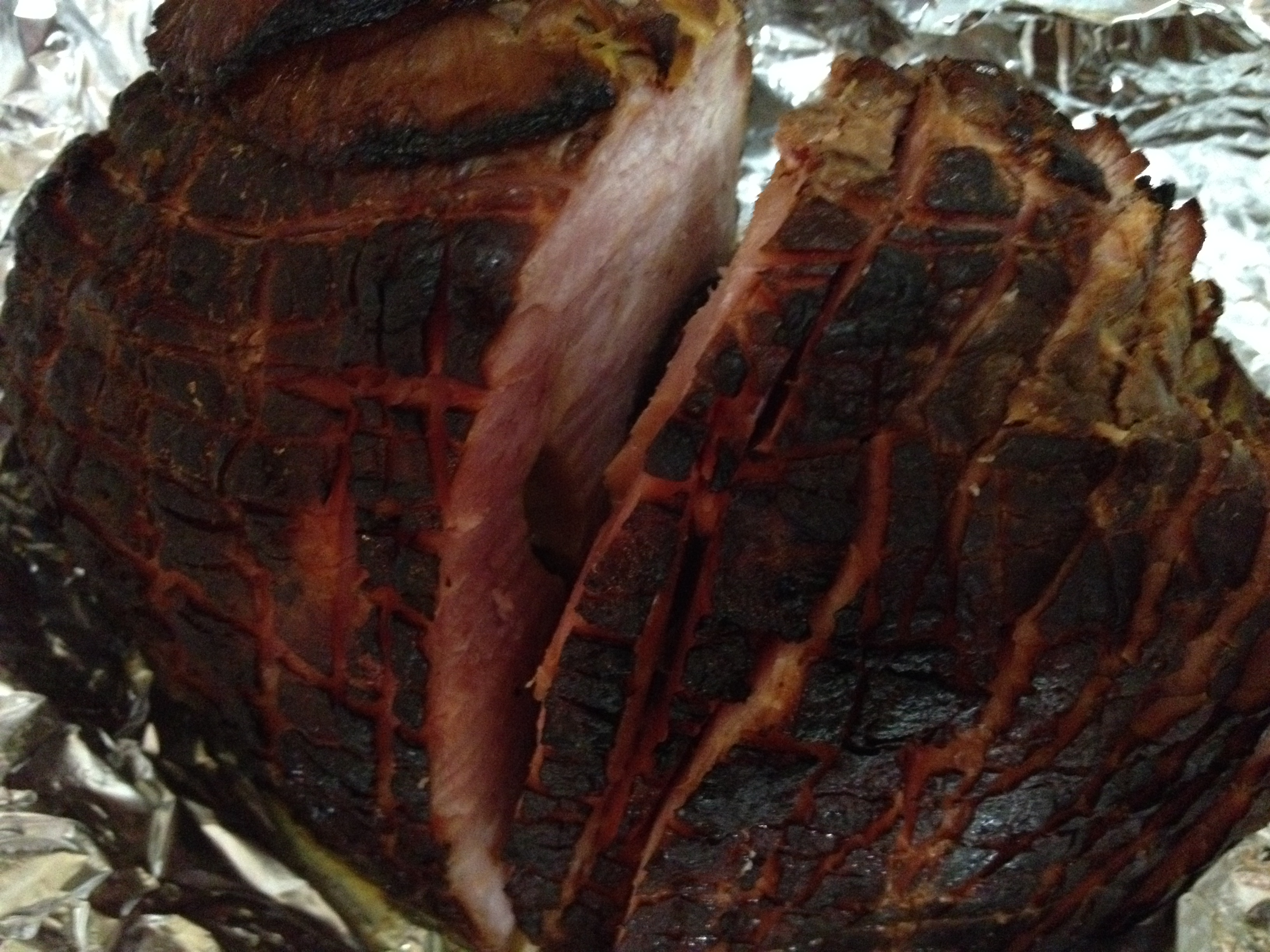 Time to work on the ham. It gets scored on the surface in a diamond pattern.