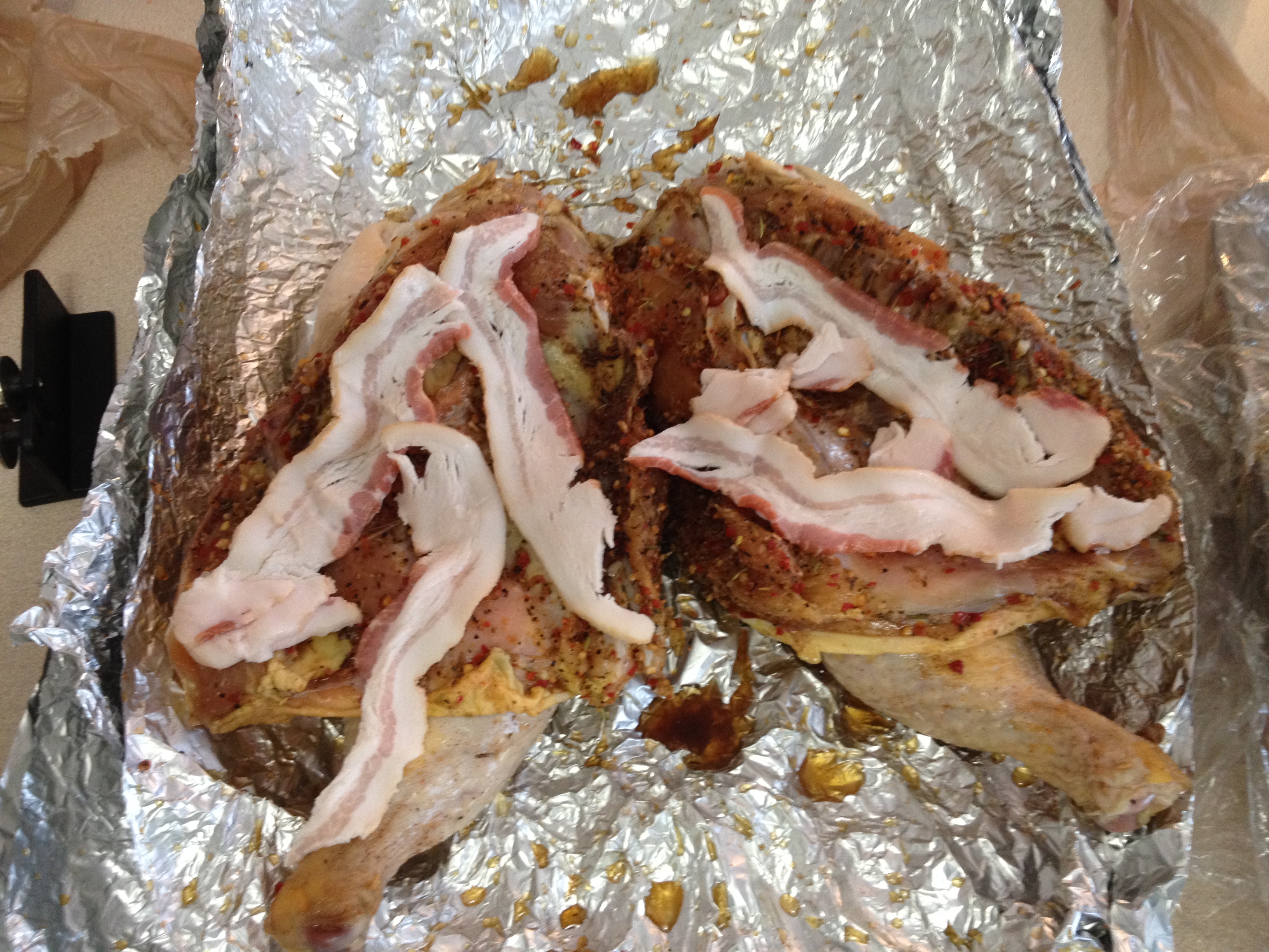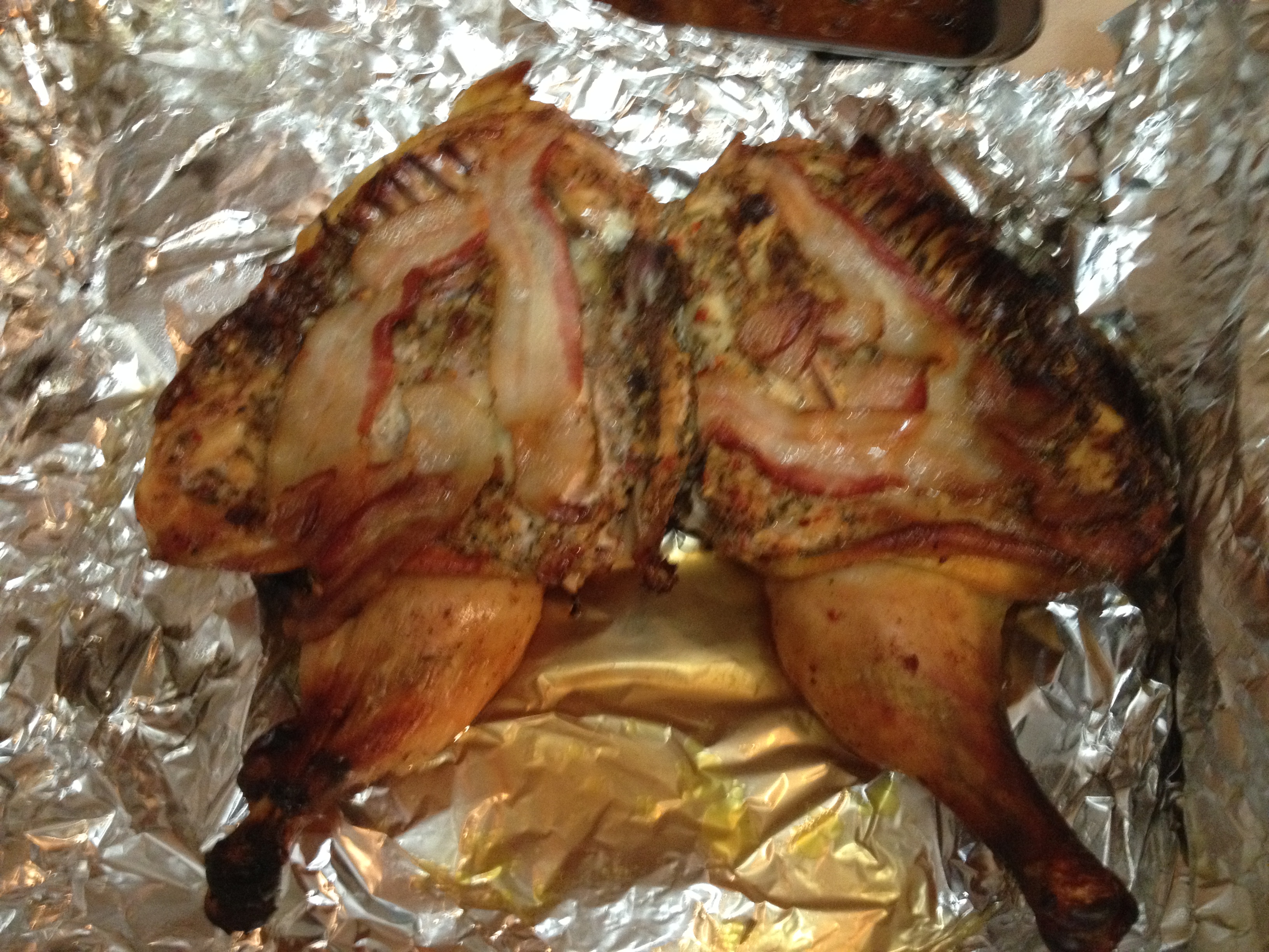 Bacon on spatch cocked chicken - Way to go!!!!!