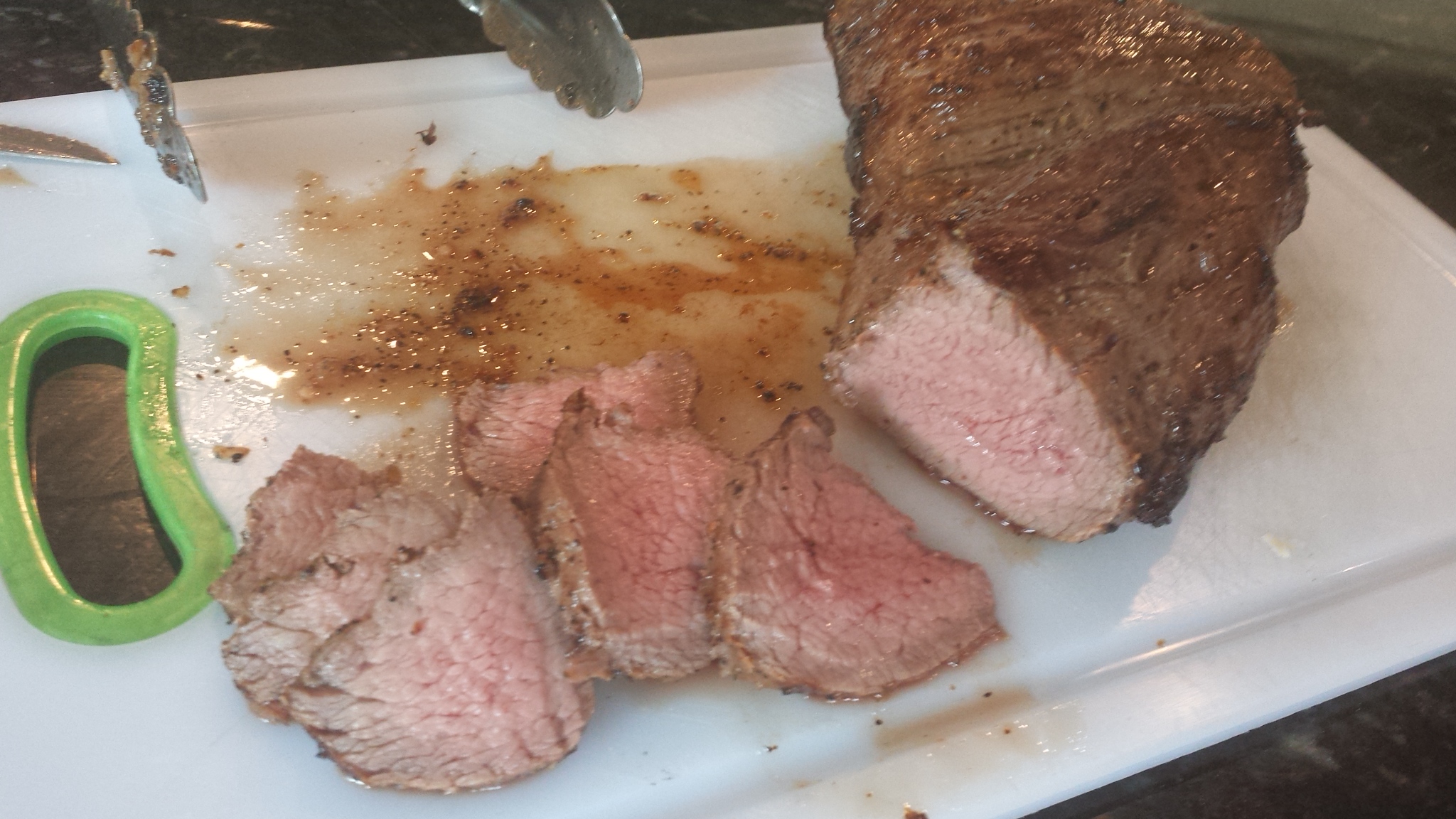 The tri tip is incredibly tender done at 135. After sear it was only at 137 internal because the sear doesn't penetrate much. The tenderness is far greater than smoking or grilling. Seared 90 seconds per side.