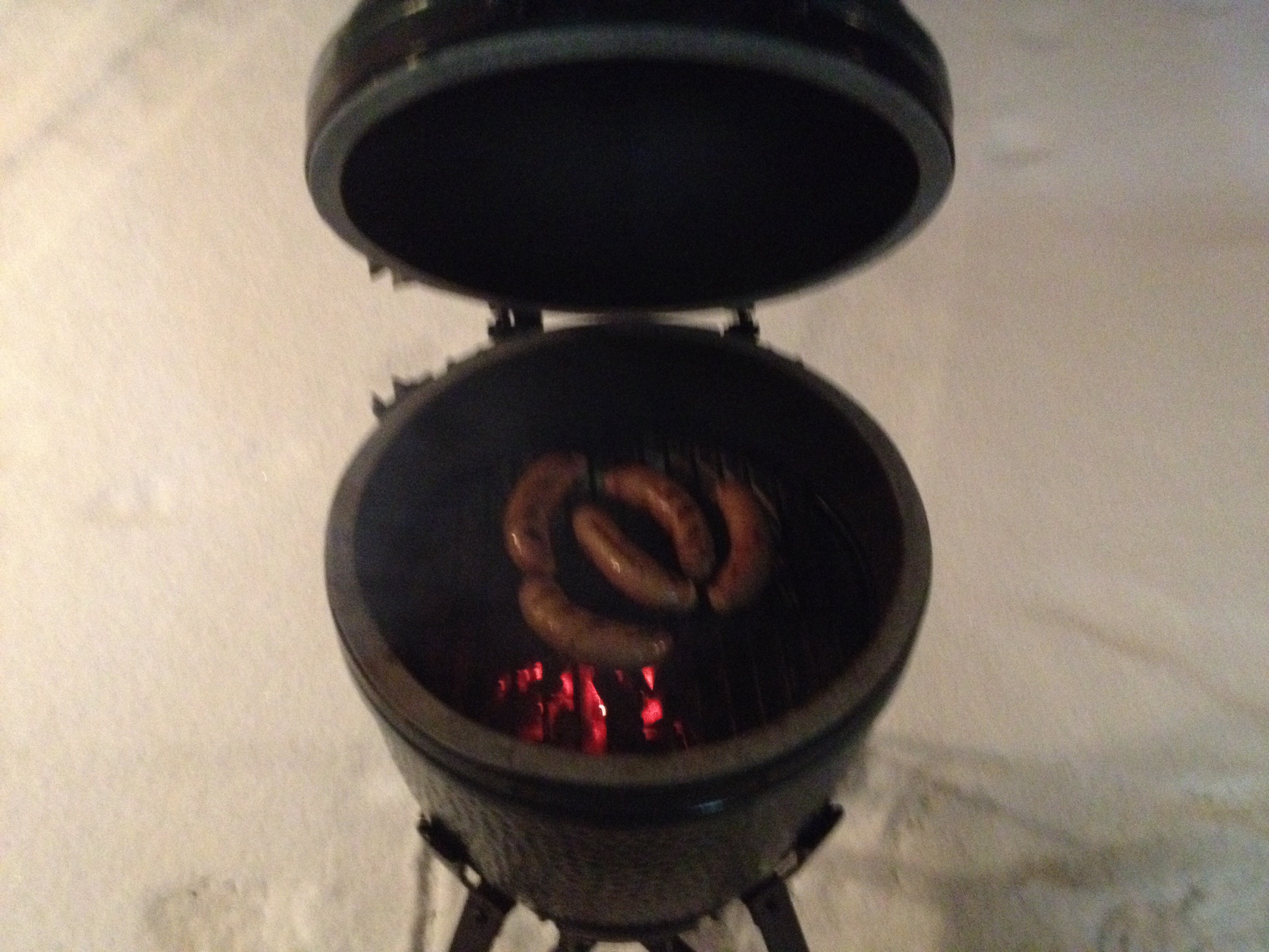 It's been cold and windy, finally rolled out the small and did some Brats, sorry about the dark picture. Haven't used the webers in the background in many moons...