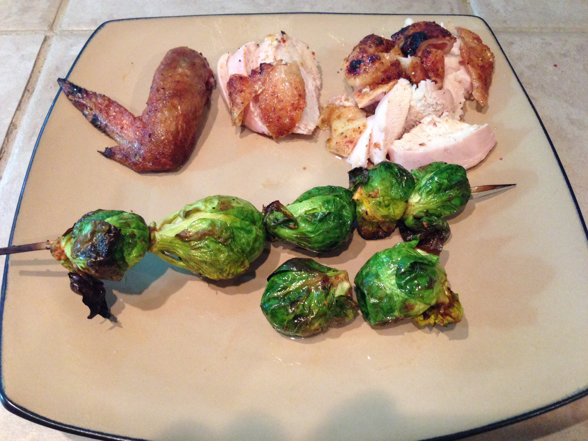 That bird looks fantastic! The brussel sprouts look so vibrant! Good job!Just a hack that makes some $hitty BBQ....