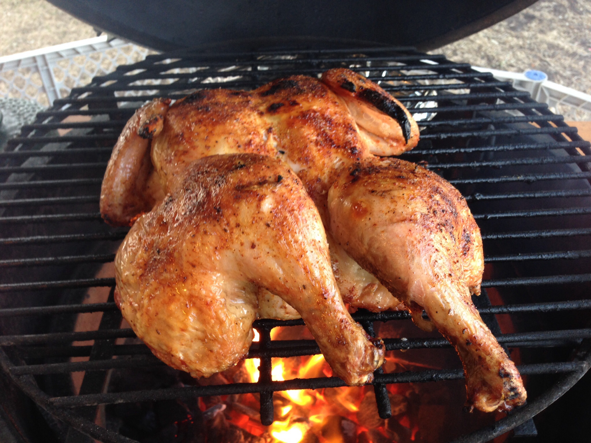 Seeing that fire burning underneath the bird gets my fire going! Digging out my egg tonight to do a spatchcock as well... Looks great btw!