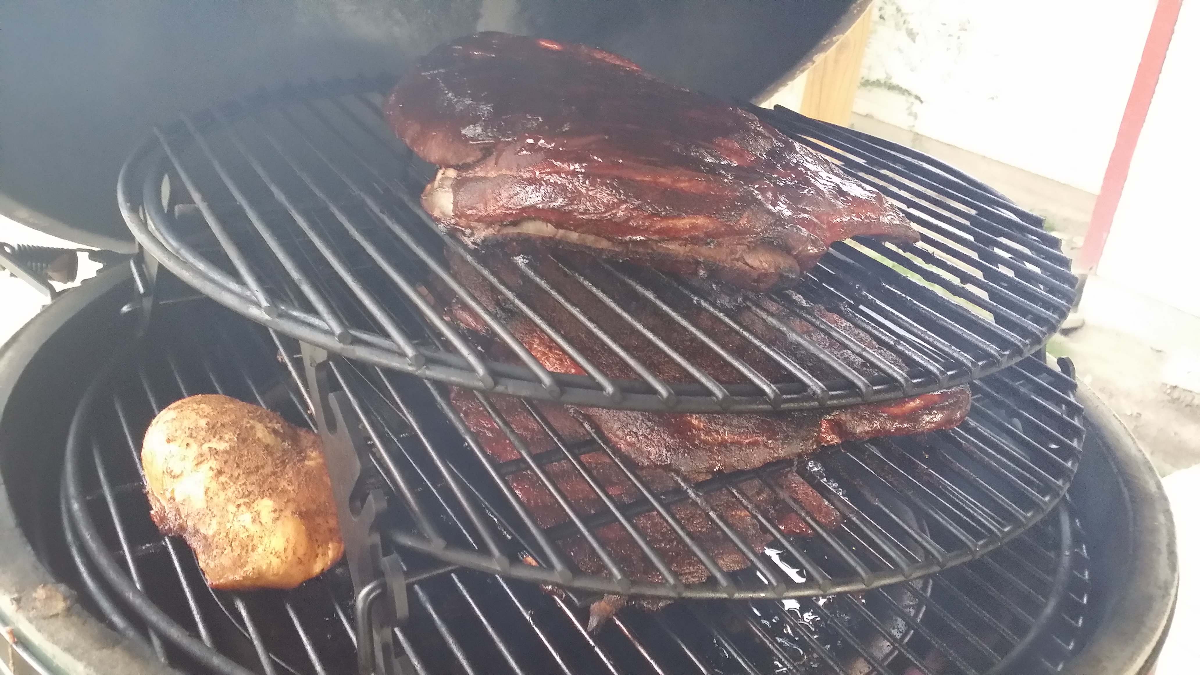 I have the woo also so I put the pizza stone and drip pan under it. It's the first time I've used both AR and woo at the same time. I need to get one more rack for the AR. No I didn't rotate. I was afraid it would mess up the rub.2-XLs ,MM,blackstone,Ooni koda 16,R&V works 8.5 gallon fryer,express smoker and 40" smoking cajun