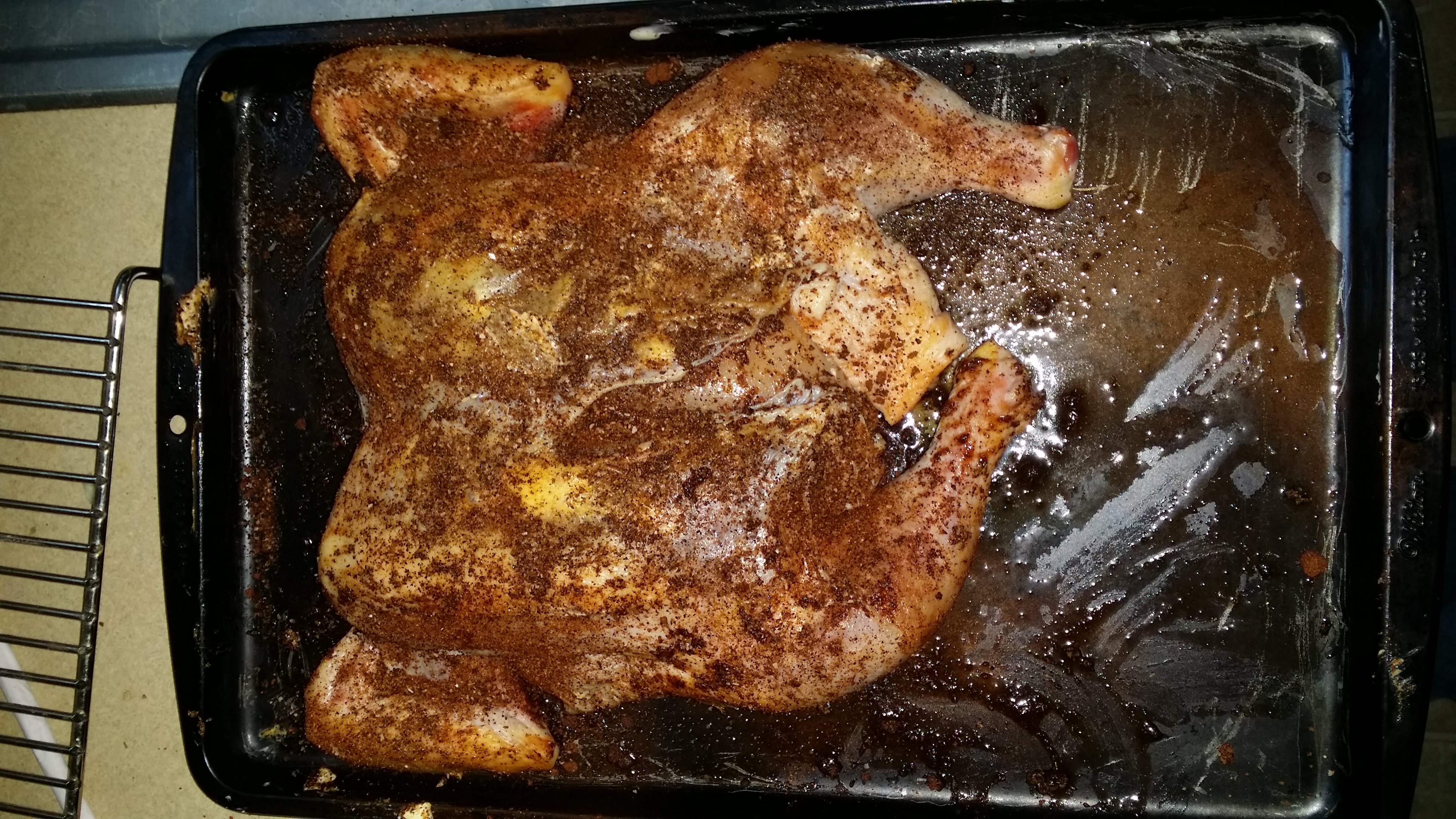 Just finished cutting on the chicken for tomorrows plan of my first spatchcock. Another local Egghead and I had been discussing Mickey's rub and he was going to make a batch to try. To make a long story short, he brought me a sample to try.