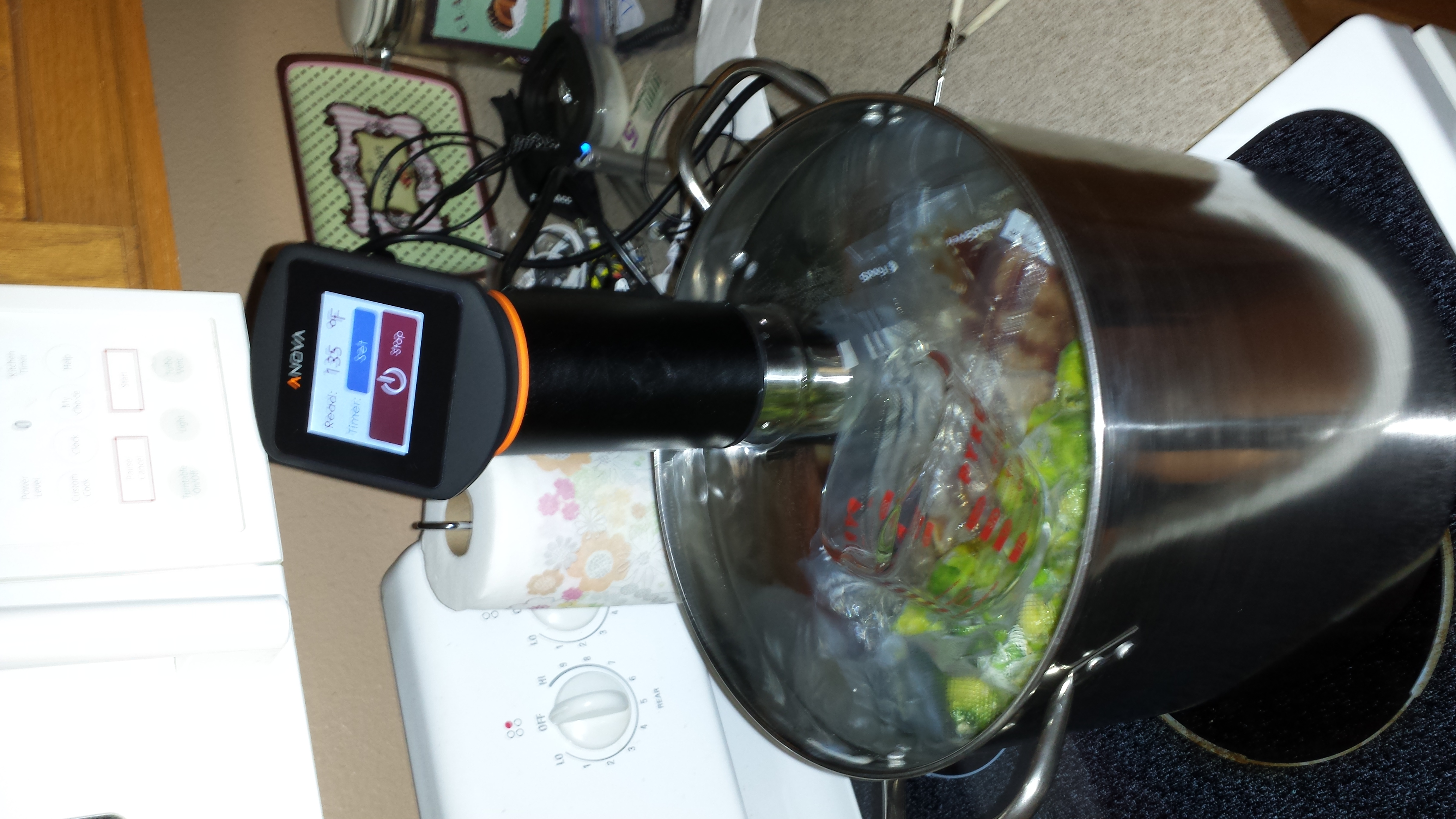 About half way thru I tossed in some Brussel sprouts with butter and garlic...but the temp was too low (looks like ideal is about 180 for an hour...next time I'll do those first).